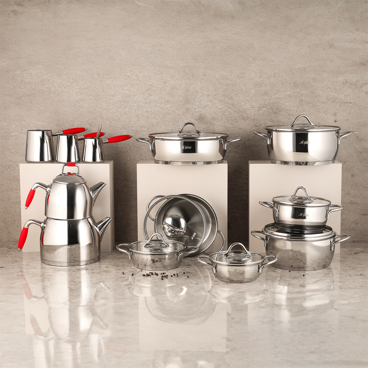 Ar Yıldız Çaydanlık ve cezve takımları paslanmaz çelik gövdeden üretilen özel tasarımlara sahiptir.