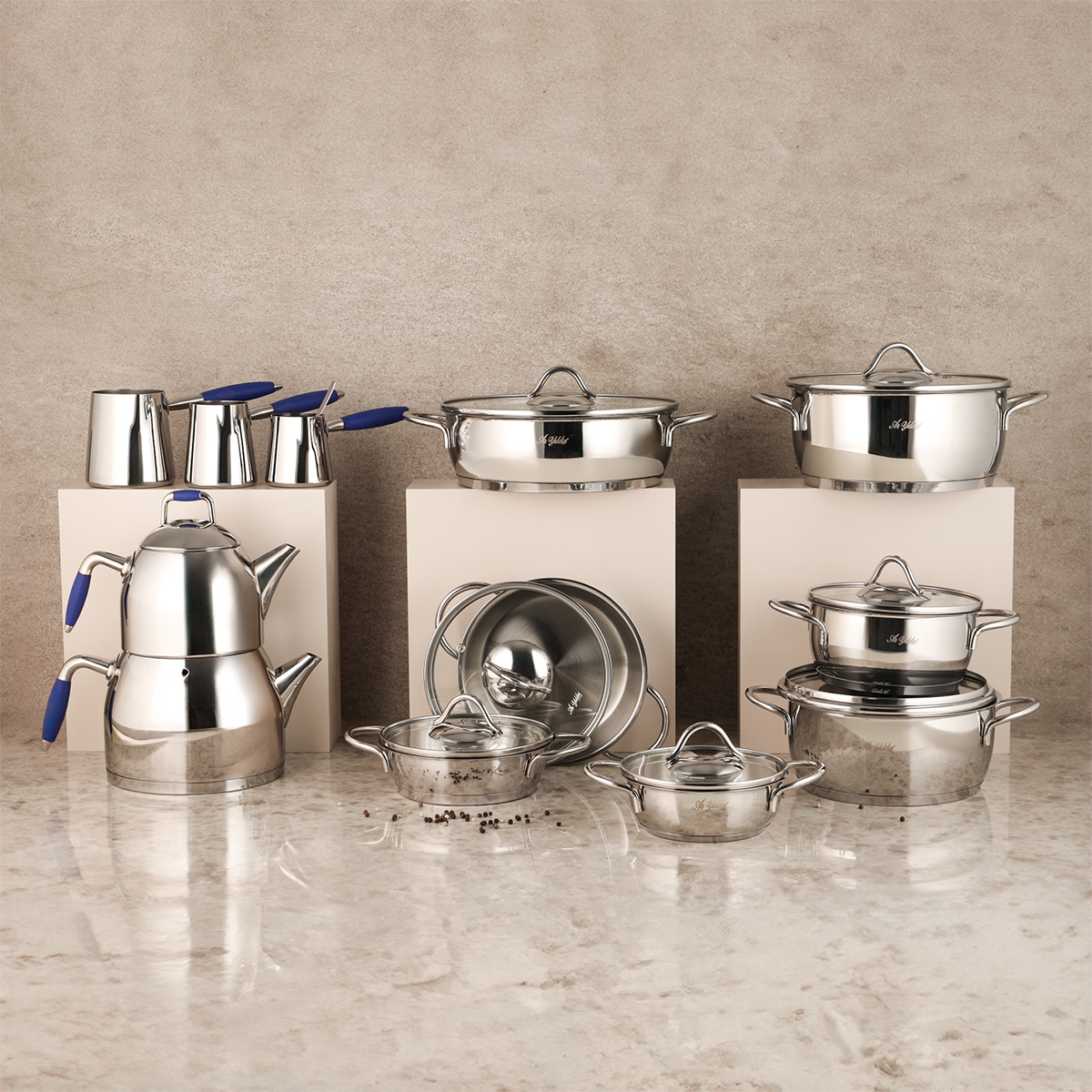 Ar Yıldız Çaydanlık ve cezve takımları paslanmaz çelik gövdeden üretilen özel tasarımlara sahiptir.