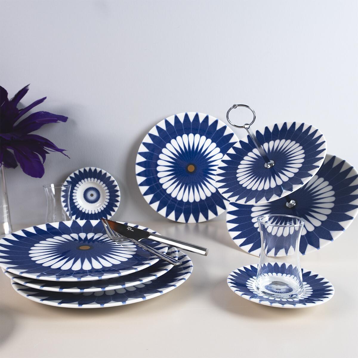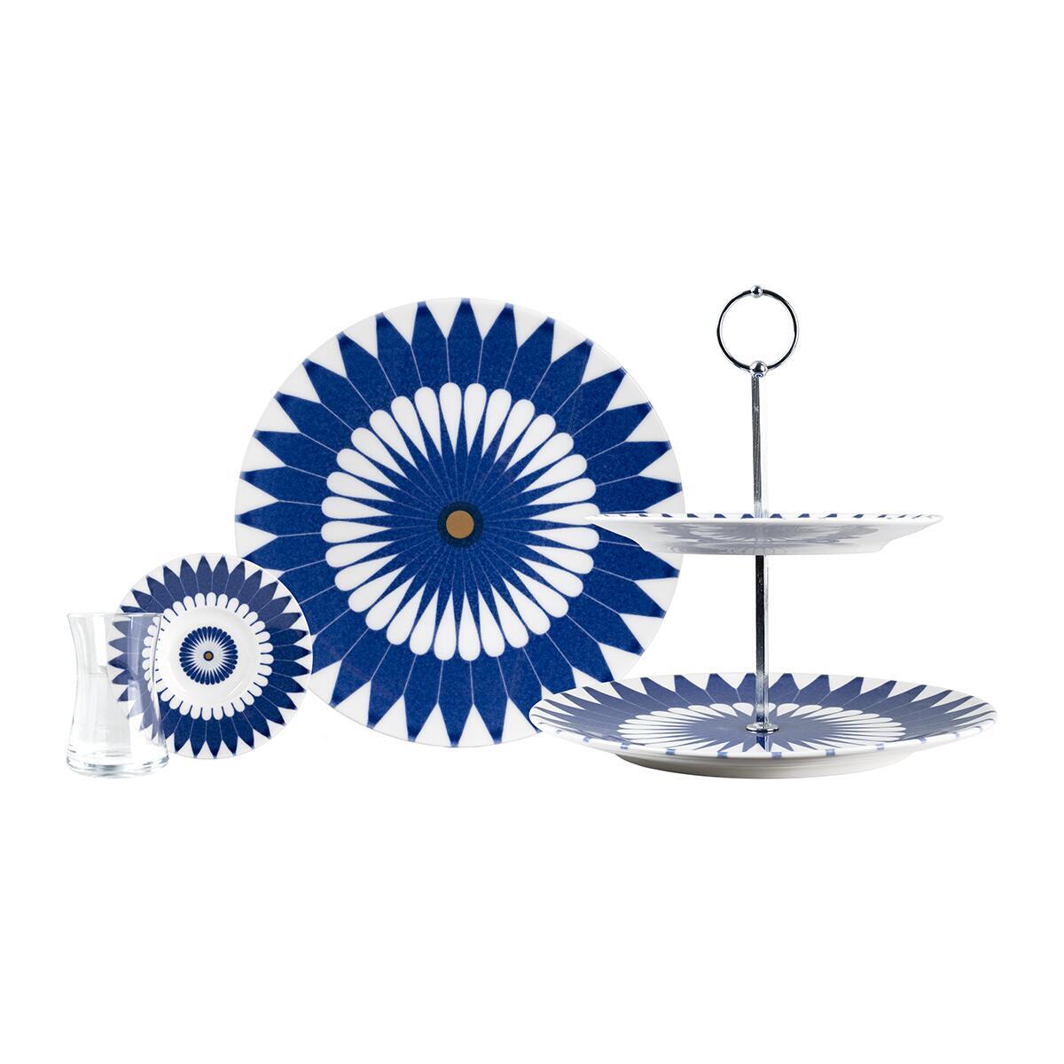 Set içeriğinde bulunan katlı kurabiyelik ile tatlılarınızı sergileyebilir, 6 adet pasta tabağı ile misafirlerinize benzersiz sunumlar hazırlayabilirsiniz.