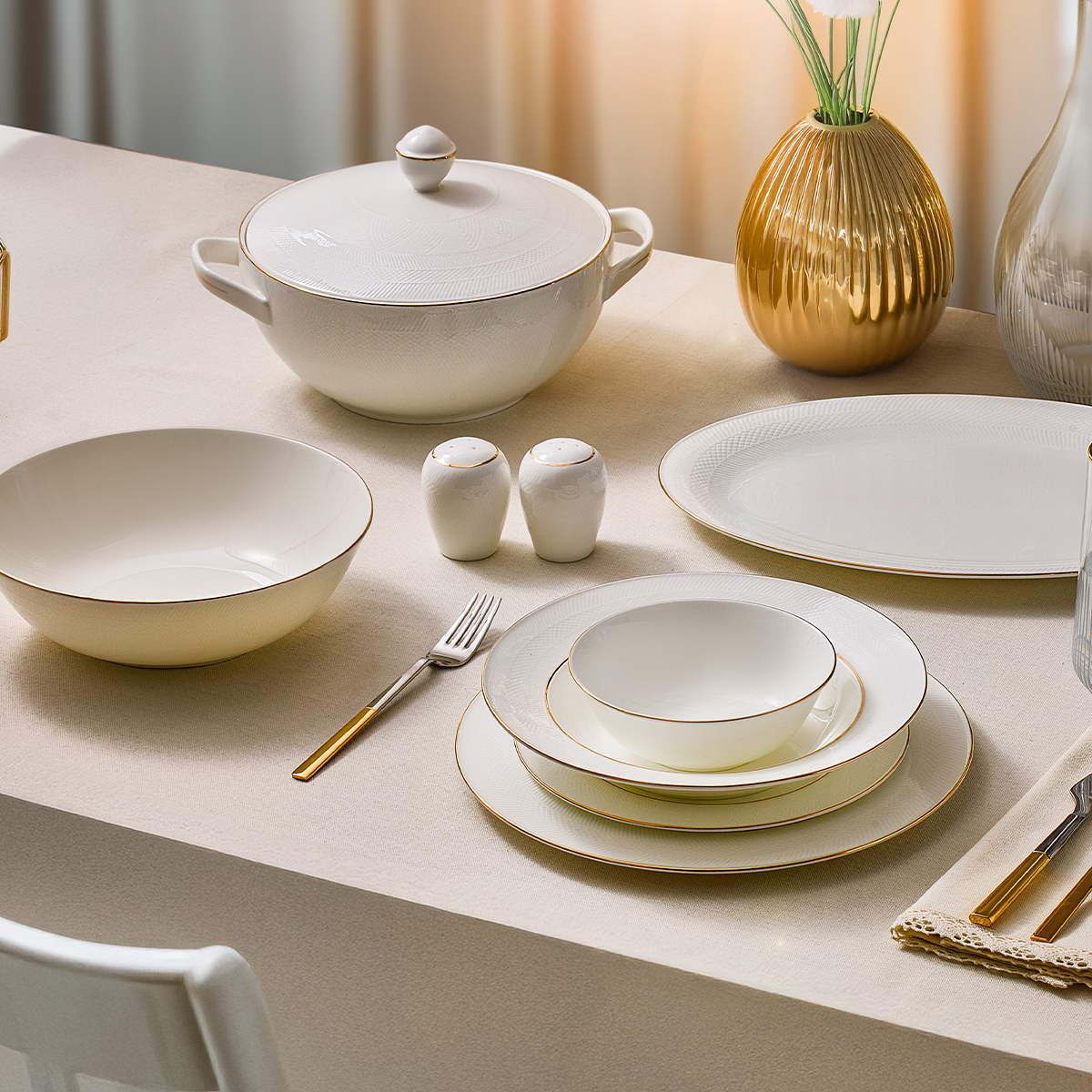 İnce Gold yaldız detayları ve sade tasarımıyla dikkat çeken bu özel takım, sofralarınıza asalet ve denge kazandırır.