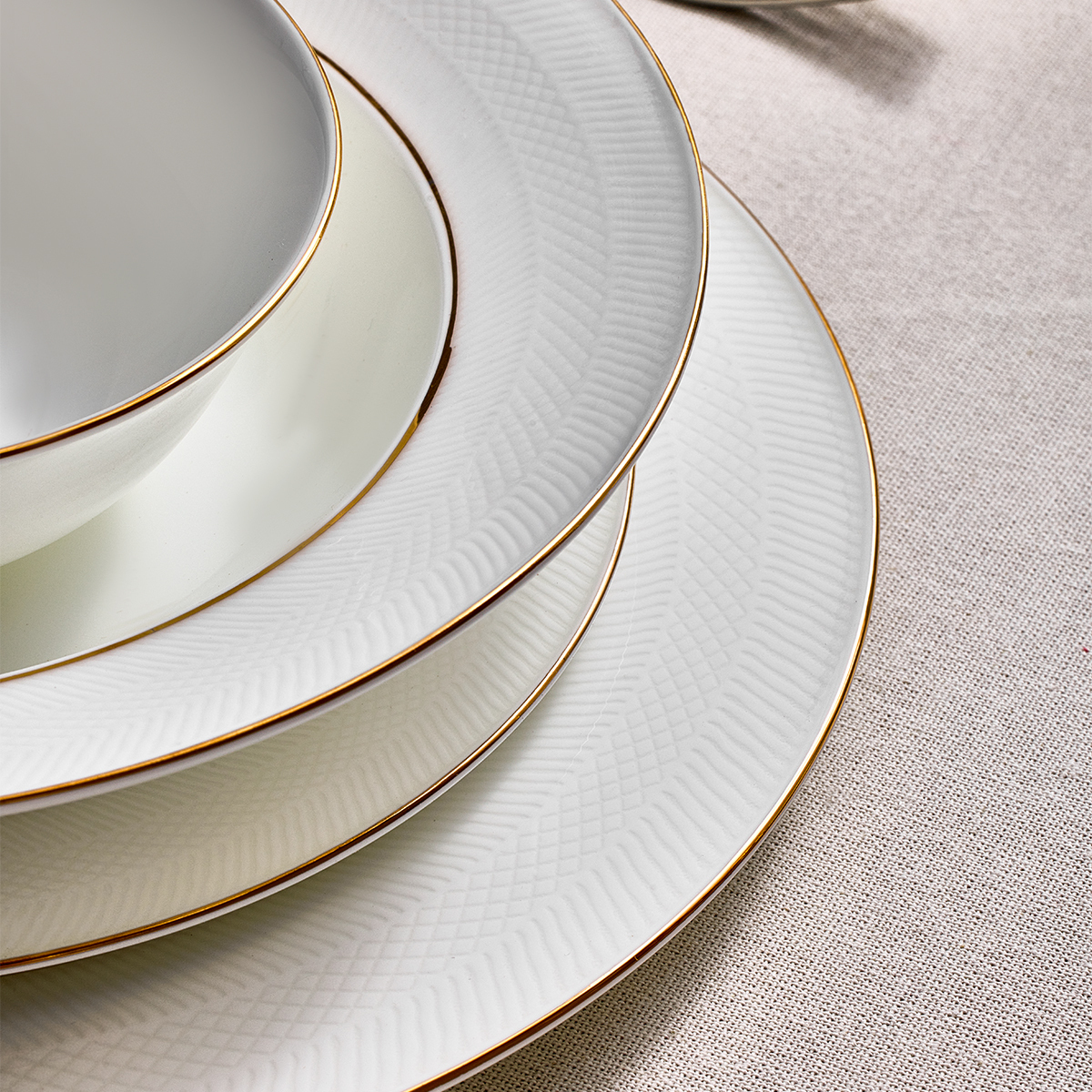 Minimalist Gold dokunuşlar, tabaklara sofistike bir görünüm kazandırırken; sağlam ve dayanıklı yapısıyla uzun ömürlü kullanım sağlar.