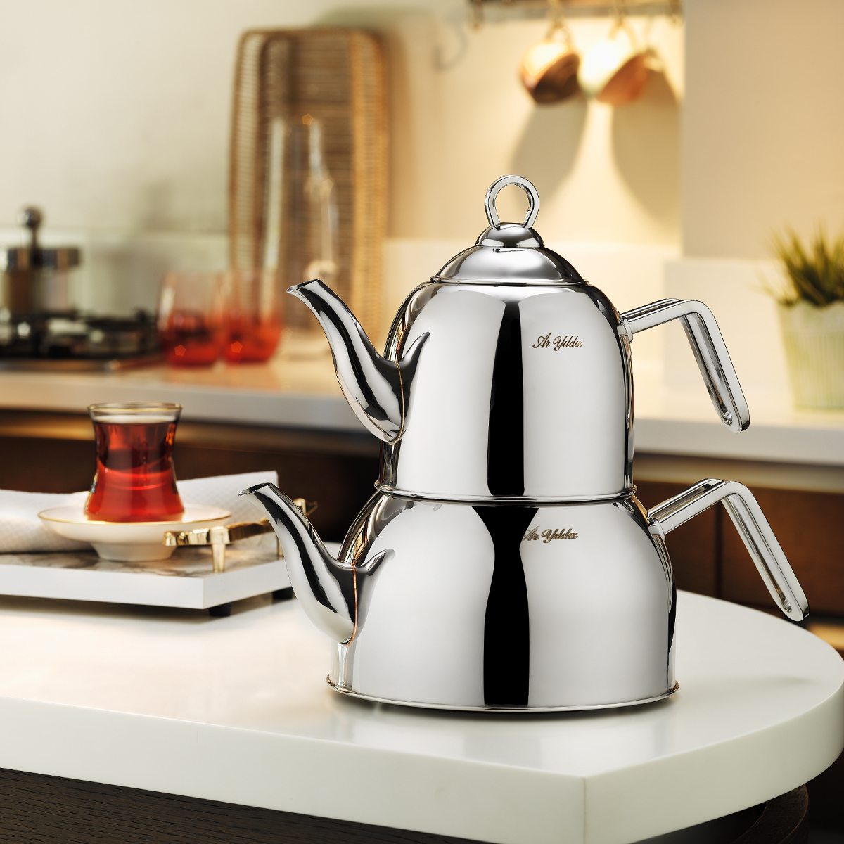 Ar Yıldız Çaydanlık takımları AİSI 304 paslanmaz çelik gövdeden üretilen özel tasarımlara sahiptir.