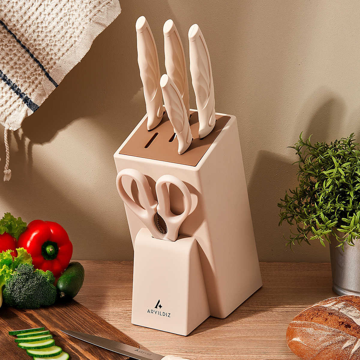 Aryıldız Benton Blok Bıçak Seti, hem profesyonel hem de günlük kullanım için ideal bir seçimdir.