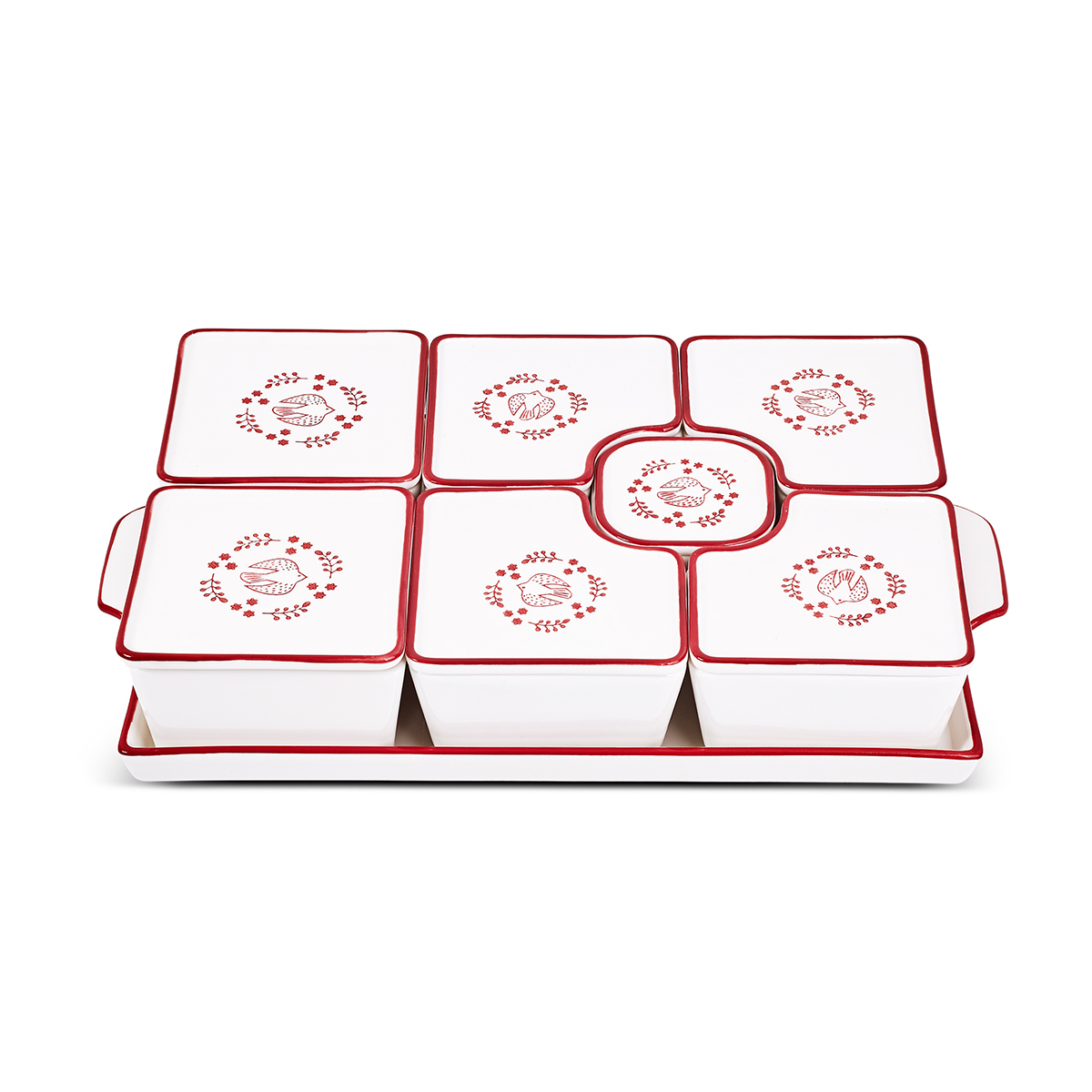 Aryıldız Bird Red 15 Parça Tepsili Dikdörtgen Kahvaltılık