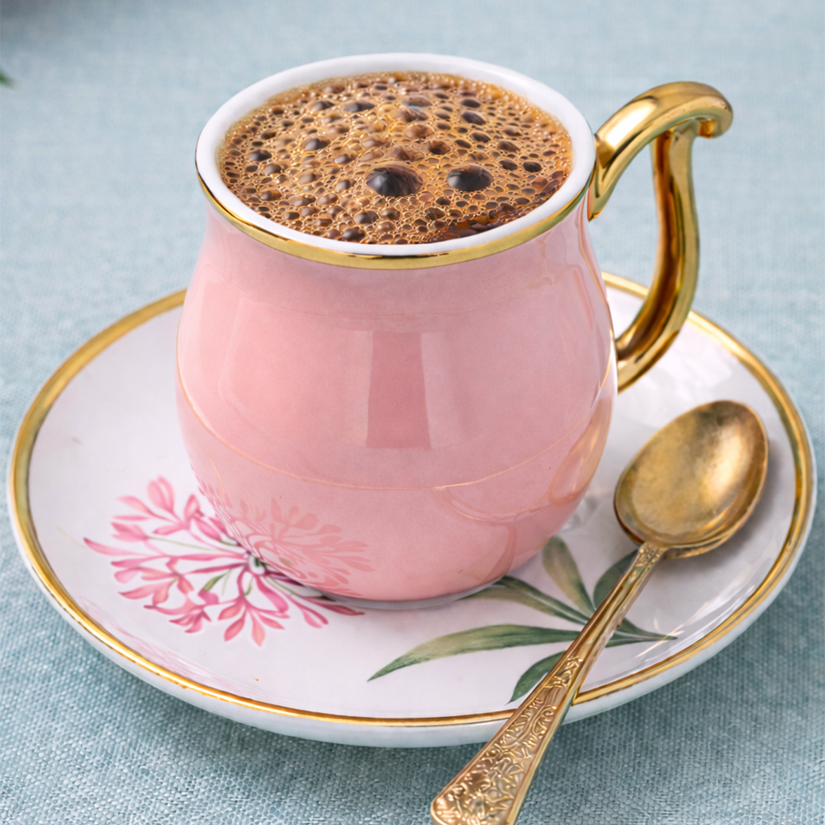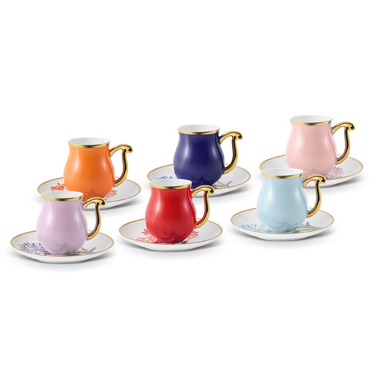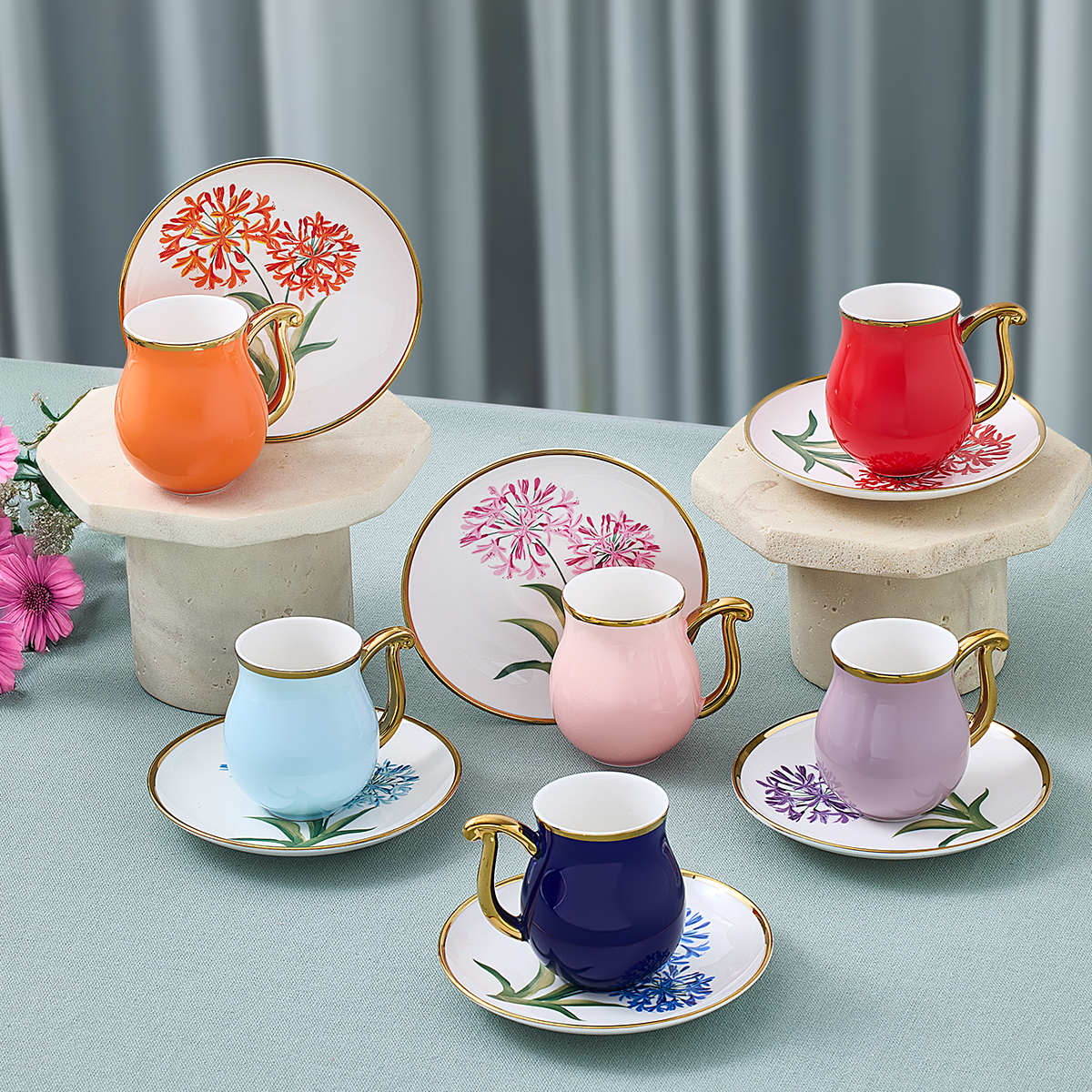 Romantik çiçek desenleriyle süslenen fincanlar, soft renk tonlarıyla hem klasik hem modern sofralara uyum sağlar.