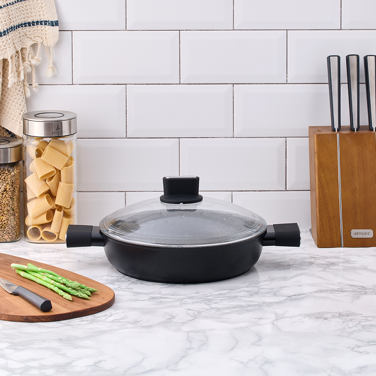 Aryıldız Caja pişirme ürünleri, üstün pişirme performansı ve kolay temizleme imkanı sağlayan birinci sınıf yapışmaz kaplaması ile mutfakların vazgeçilmezi olacak.