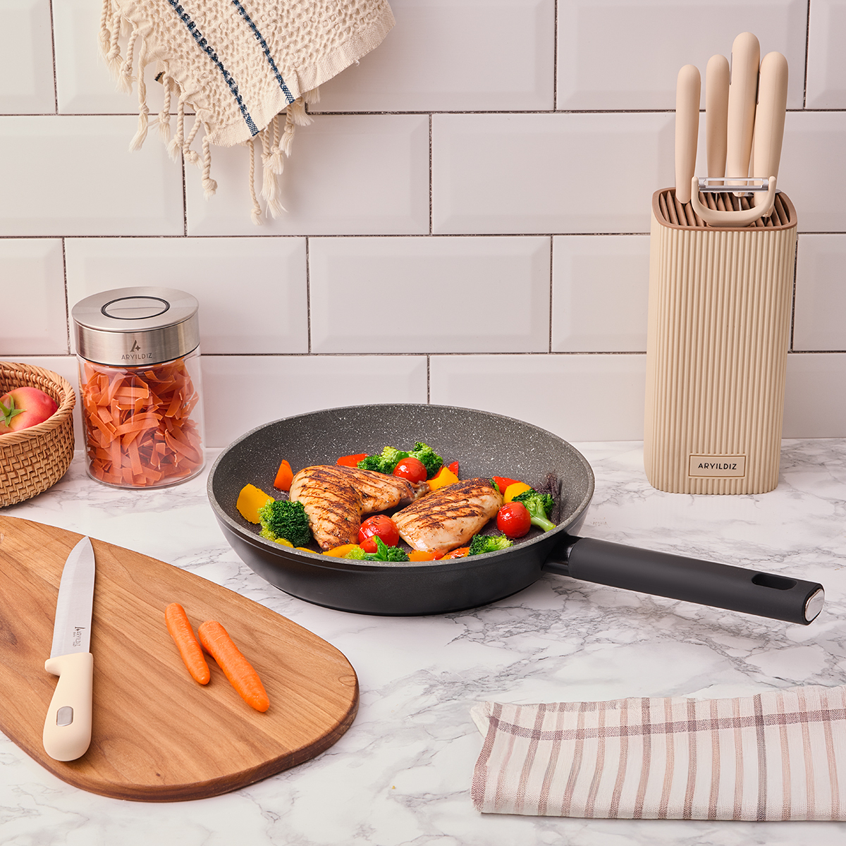 Aryıldız Caja pişirme ürünleri, üstün pişirme performansı ve kolay temizleme imkanı sağlayan birinci sınıf granit kaplaması ile mutfakların vazgeçilmezi olacak.