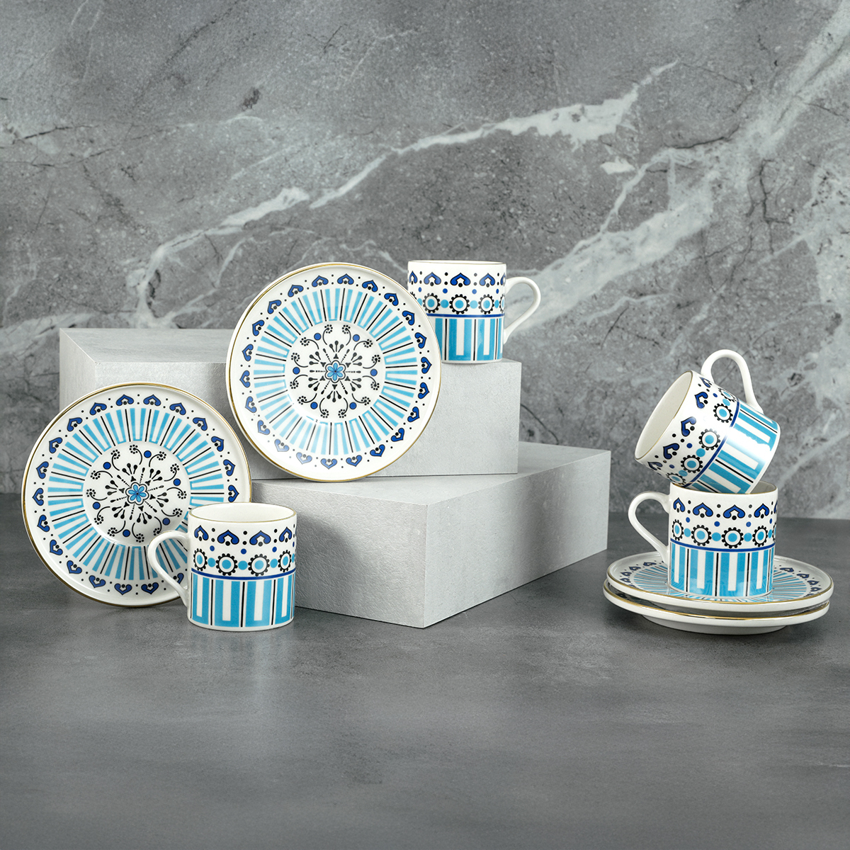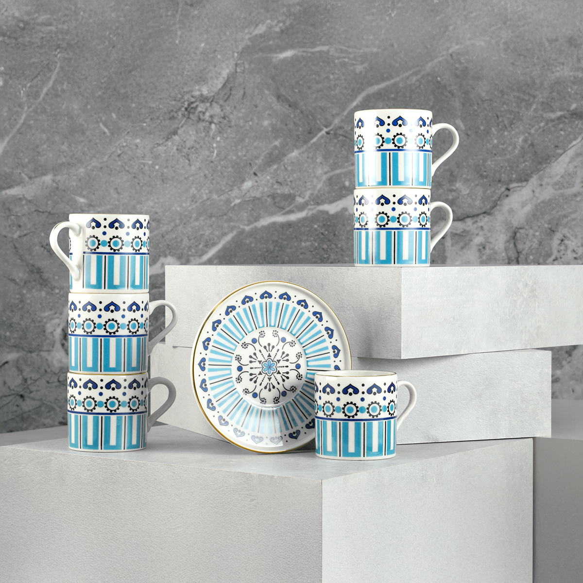 Birlikte mükemmel bir uyum yakalayan geometrik desenlerin hareketi ile kahve sunumlarınızda misafirlerinizin beğenisini kazanacak bu 6 kişilik takım, en sevdiğiniz fincanlarınız arasında yerini almaya aday!