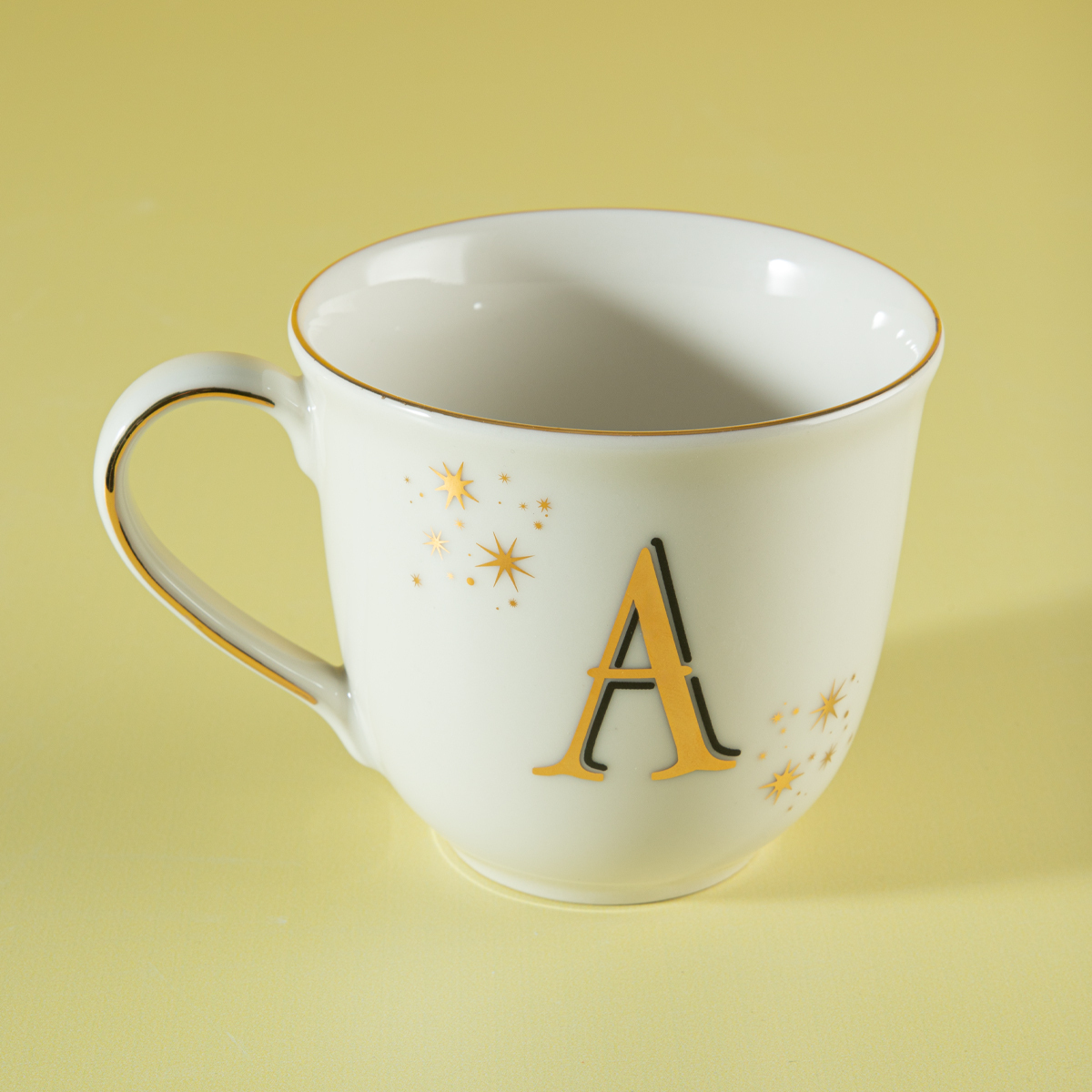 Aryıldız Chique serisinin zarif ve modern tasarımıyla öne çıkan Harfli Kupa A, 300 ml kapasitesiyle kahve, çay ve sıcak içeceklerinizi keyifle yudumlamanız için tasarlandı.