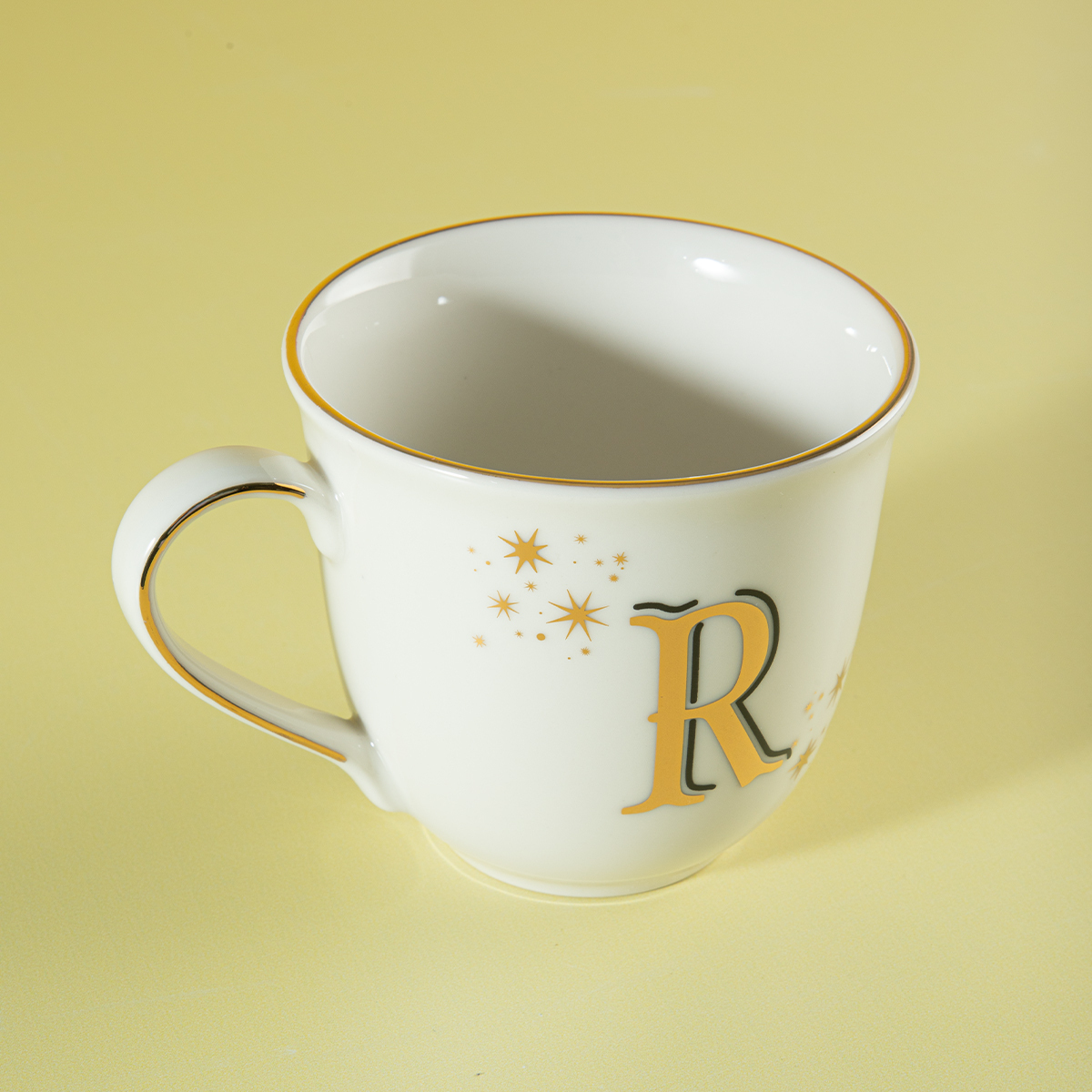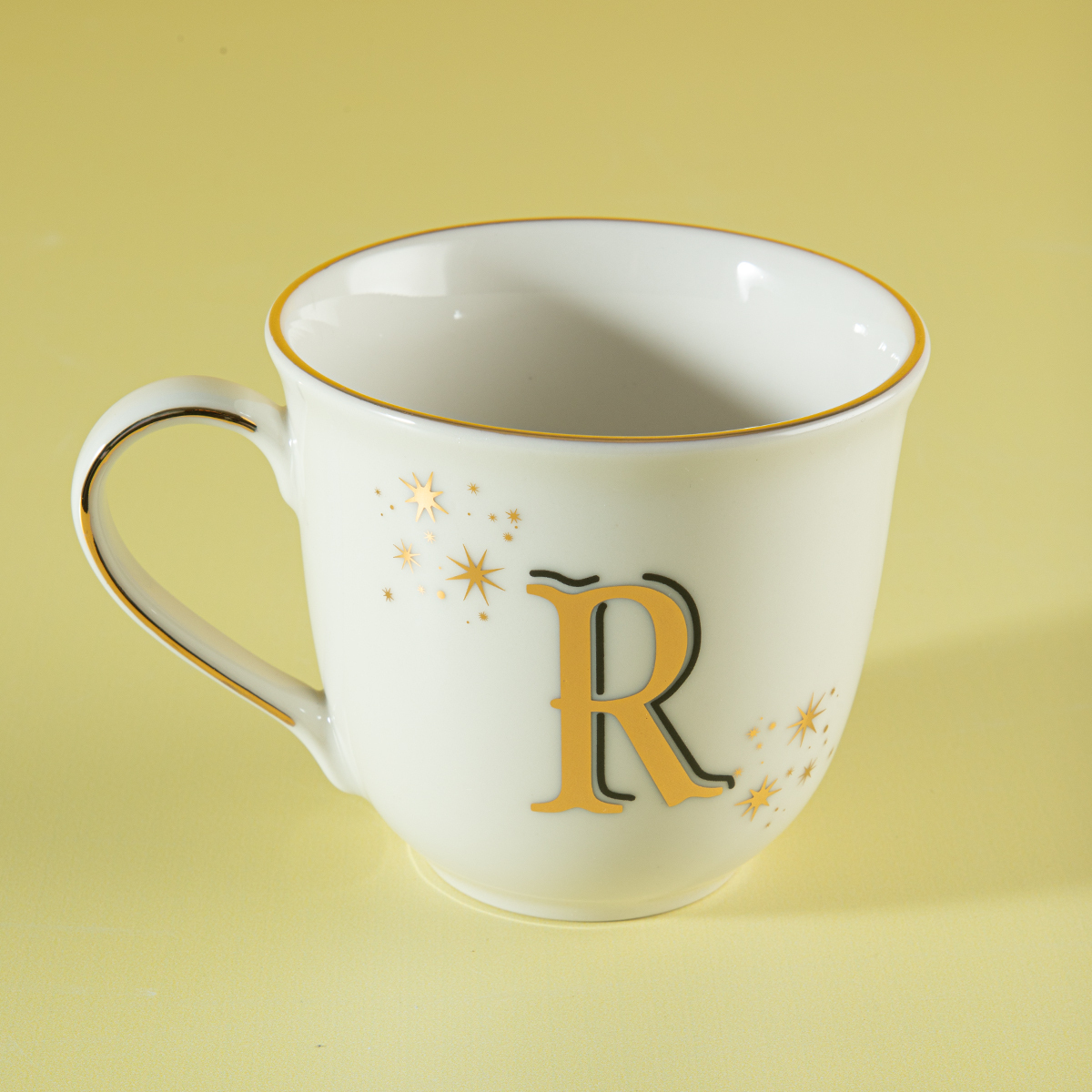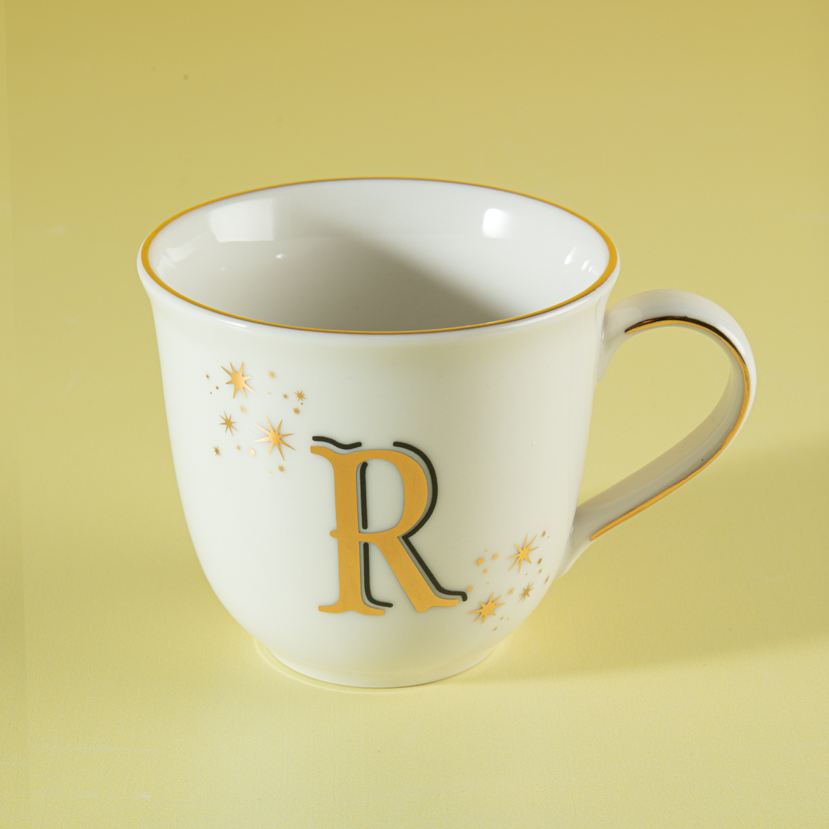 Aryıldız Chique serisinin zarif ve modern tasarımıyla öne çıkan Harfli Kupa R, 300 ml kapasitesiyle kahve, çay ve sıcak içeceklerinizi keyifle yudumlamanız için tasarlandı.