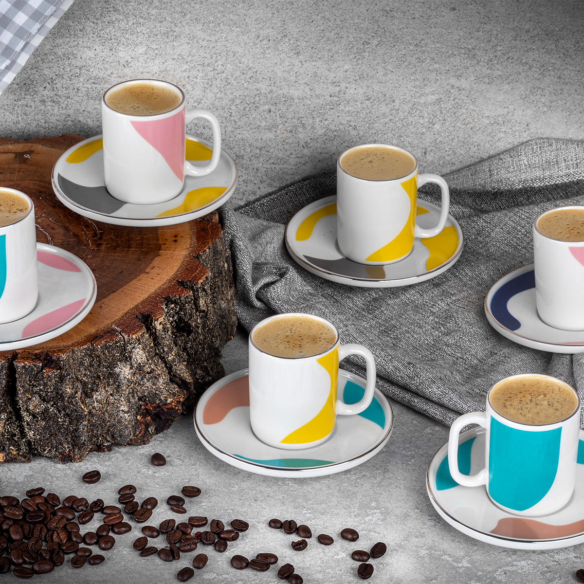 Birlikte mükemmel bir uyum yakalayan geometrik desenlerin hareketi ile kahve sunumlarınızda misafirlerinizin beğenisini kazanacak bu 6 kişilik takım, en sevdiğiniz fincanlarınız arasında yerini almaya aday!