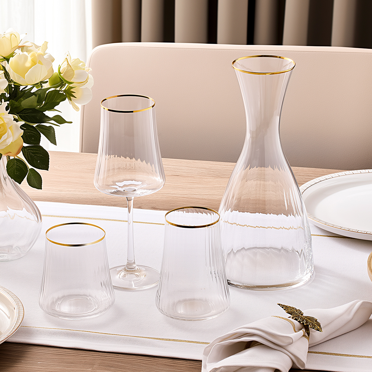 İnce kristal cam yapısı ve altın detaylı zarif tasarımıyla bu set, hem özel davet sofralarında hem de günlük kullanımda göz kamaştırır.