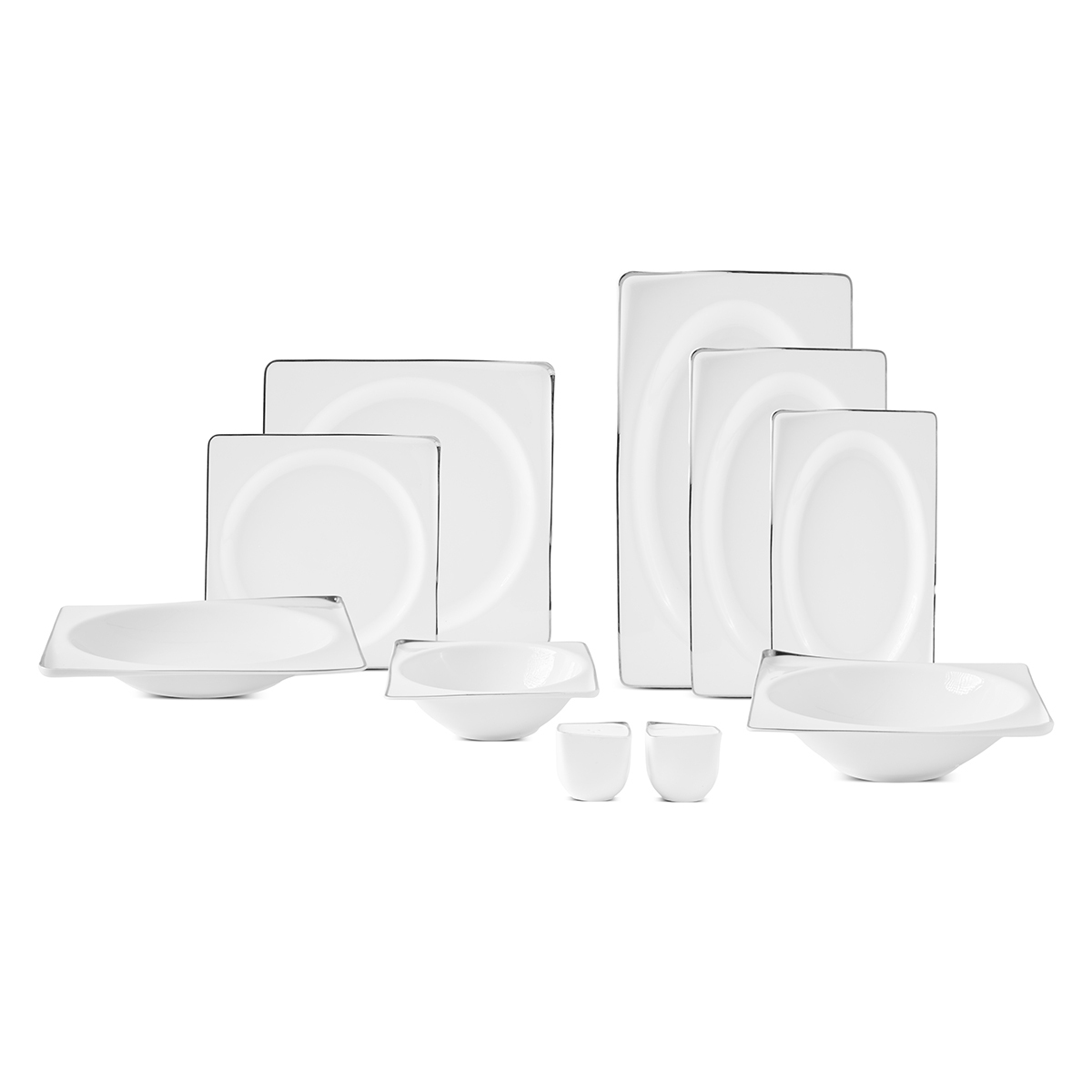 Yalın ama etkili platin şerit detaylarıyla, klasik ve modern sofraları bir araya getiren bir duruş sergiliyor.