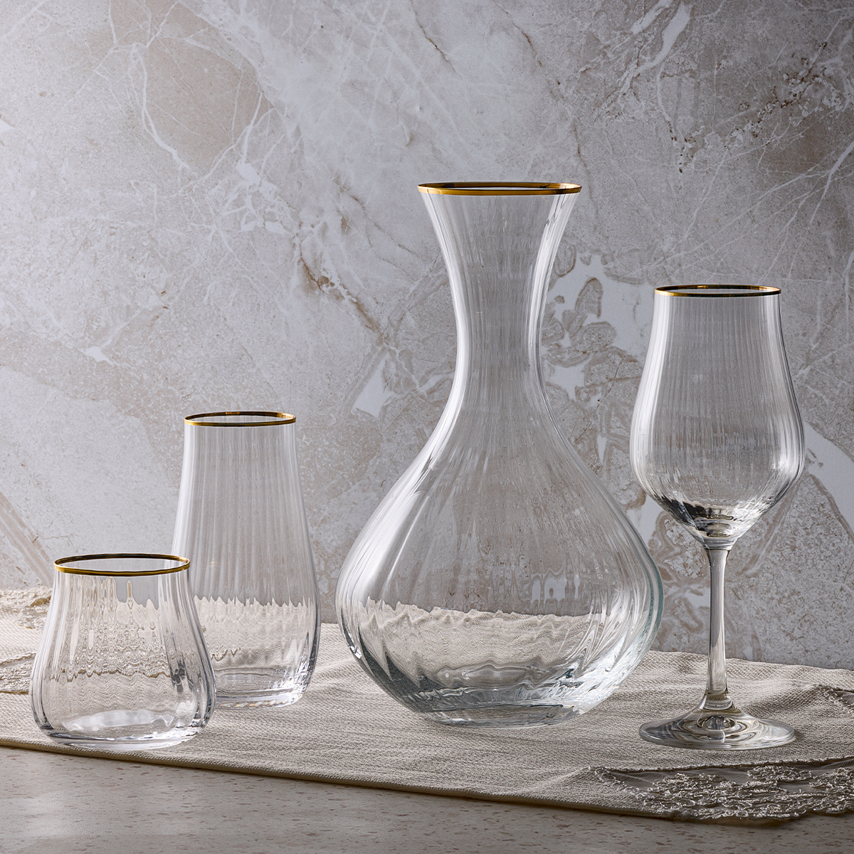 İnce kristal cam yapısı ve altın detaylı zarif tasarımıyla bu set, hem özel davet sofralarında hem de günlük kullanımda göz kamaştırır.