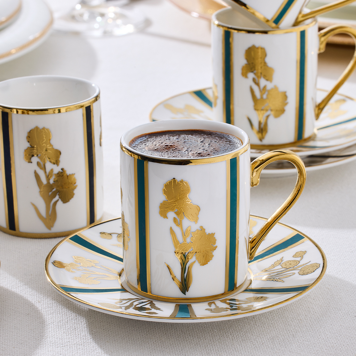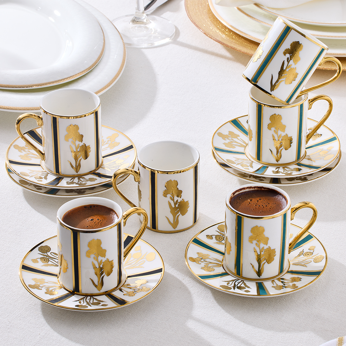 12 parçadan oluşan bu set, 6 adet kahve fincanı ve 6 adet fincan tabağından meydana gelir.