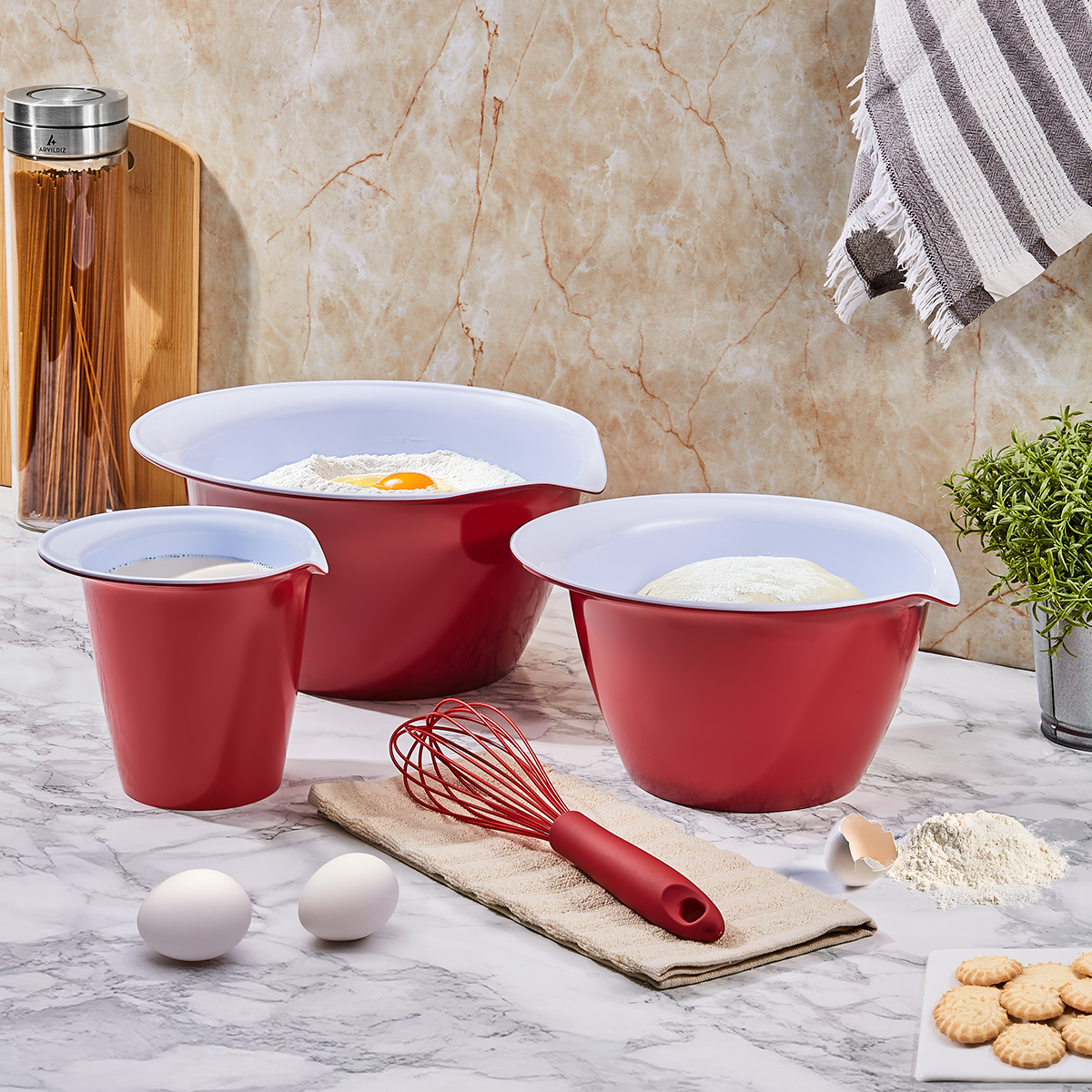 Mutfakta her işinizi kolaylaştıracak bu 3'lü karıştırma kabı setiyle tanışın! Farklı hacimleriyle çeşitli tarifler için ideal ölçüler sunar.