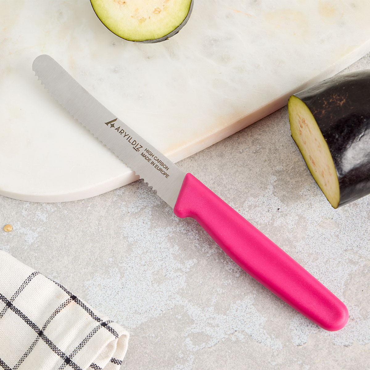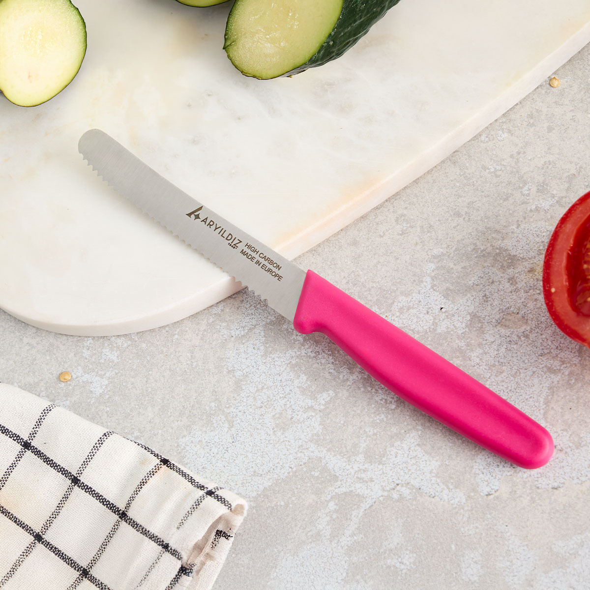 Bıçağın renkli ergonomik sapı, elde rahat bir tutuş sunarken mutfağınıza estetik bir görünüm kazandırır. Hafif yapısı sayesinde uzun süreli kullanımda bile konfor sağlar. Aryıldız’ın kalite anlayışıyla üretilen bu bıçak, keskinliğini uzun süre korur ve mutfakta profesyonel performans sunar.