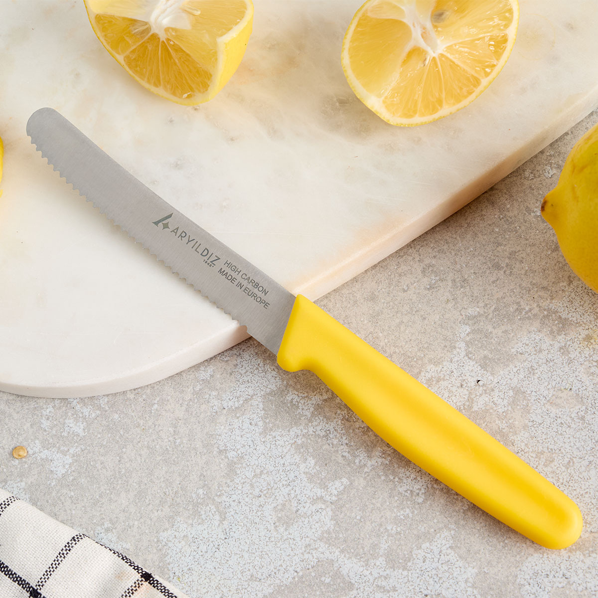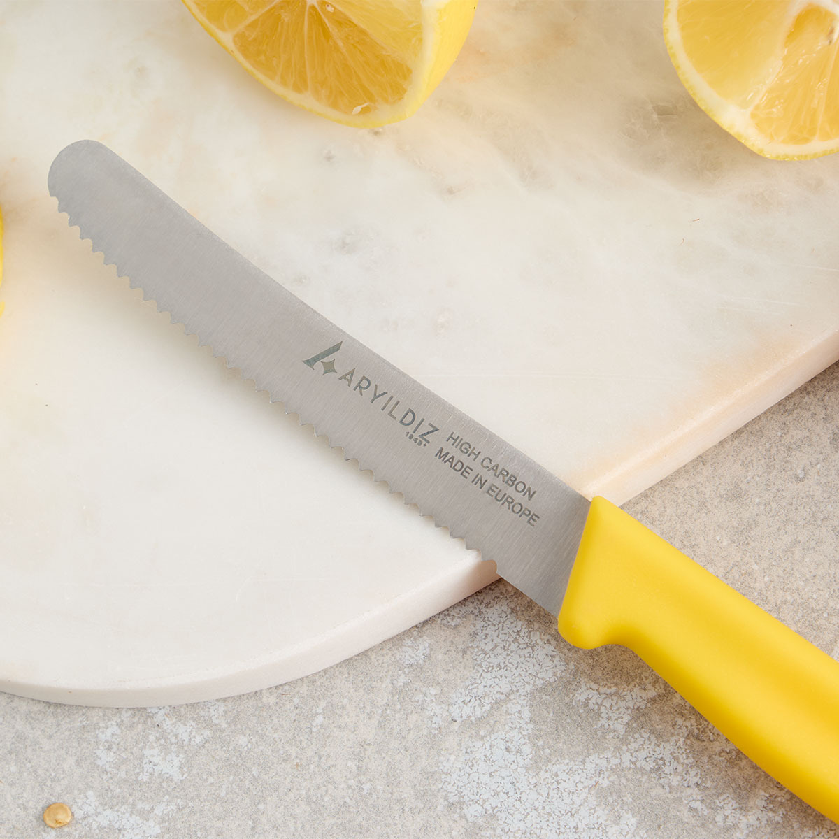 Bıçağın renkli ergonomik sapı, elde rahat bir tutuş sunarken mutfağınıza estetik bir görünüm kazandırır. Hafif yapısı sayesinde uzun süreli kullanımda bile konfor sağlar. Aryıldız’ın kalite anlayışıyla üretilen bu bıçak, keskinliğini uzun süre korur ve mutfakta profesyonel performans sunar.