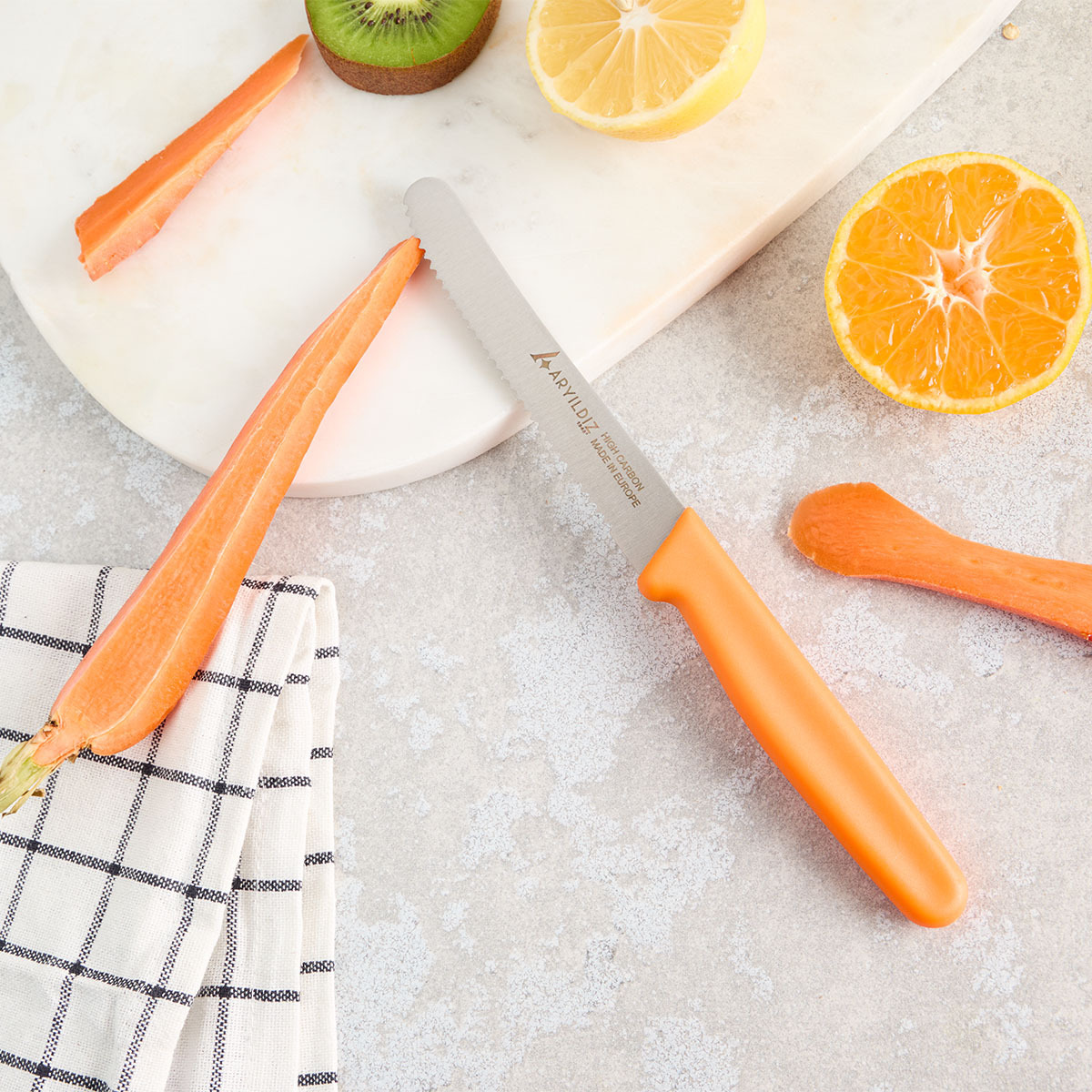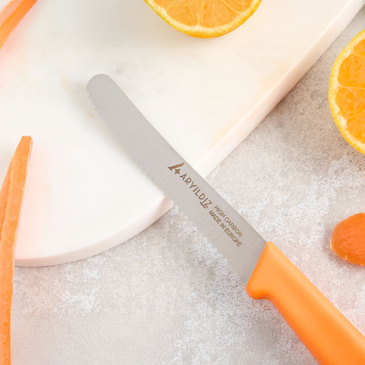 Bıçağın renkli ergonomik sapı, elde rahat bir tutuş sunarken mutfağınıza estetik bir görünüm kazandırır. Hafif yapısı sayesinde uzun süreli kullanımda bile konfor sağlar. Aryıldız’ın kalite anlayışıyla üretilen bu bıçak, keskinliğini uzun süre korur ve mutfakta profesyonel performans sunar.