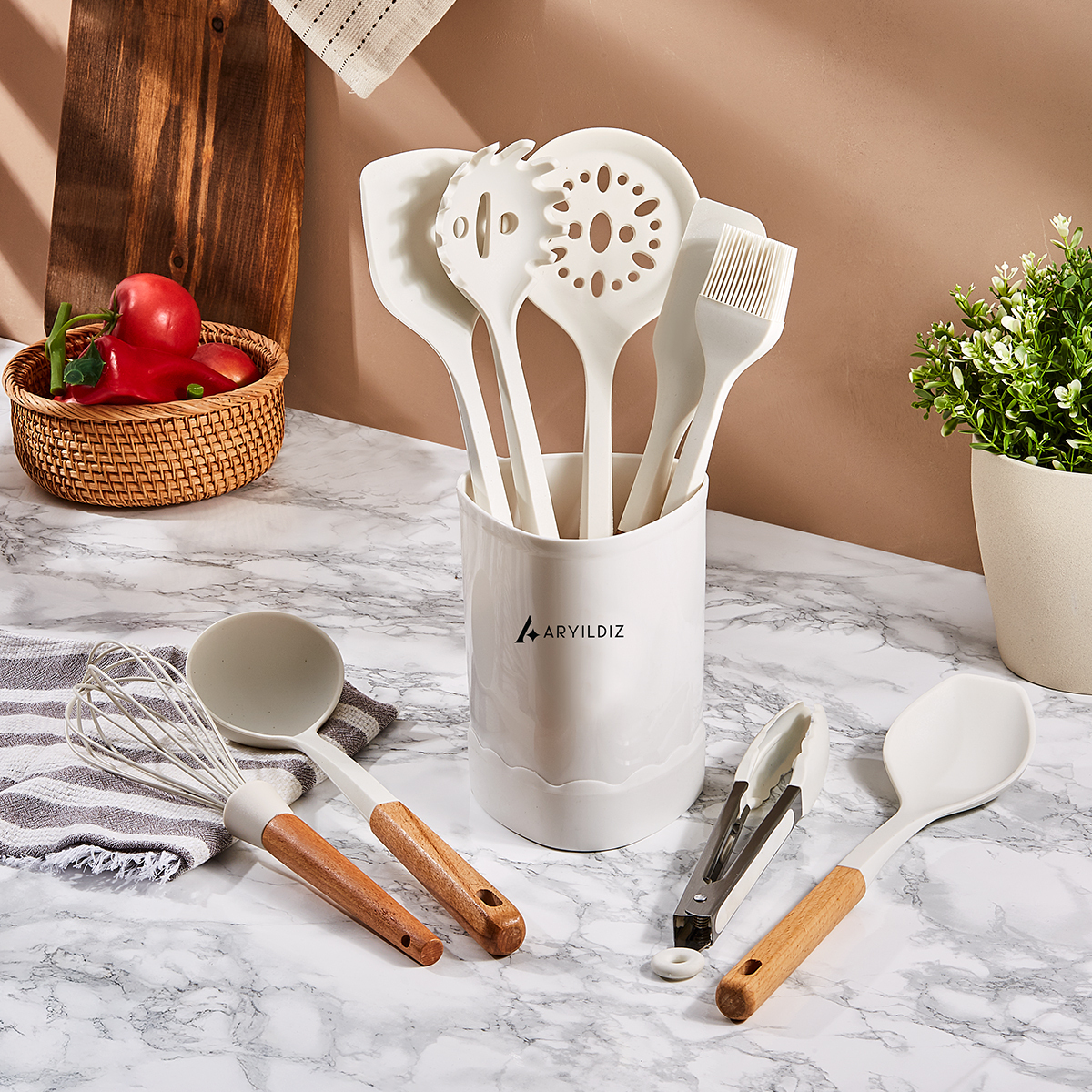 Mutfakta hem şıklığı hem de işlevselliği arayanlar için Aryıldız kalitesiyle üretilmiş 10 Parça Mutfak Seti, günlük kullanımda ihtiyaç duyacağınız temel yardımcı gereçleri bir araya getiriyor.