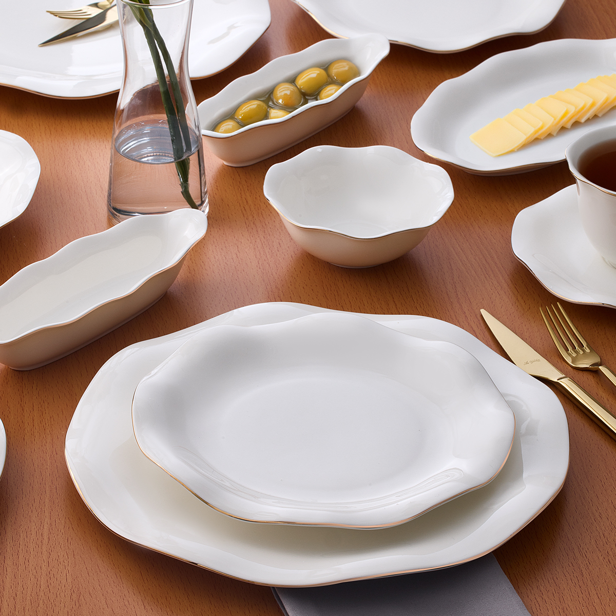 Aryıldız Daphne Gold 32 Parça Kahvaltı Takımı, klasik çizgileri modern zarafetle buluşturan özel bir koleksiyondur.