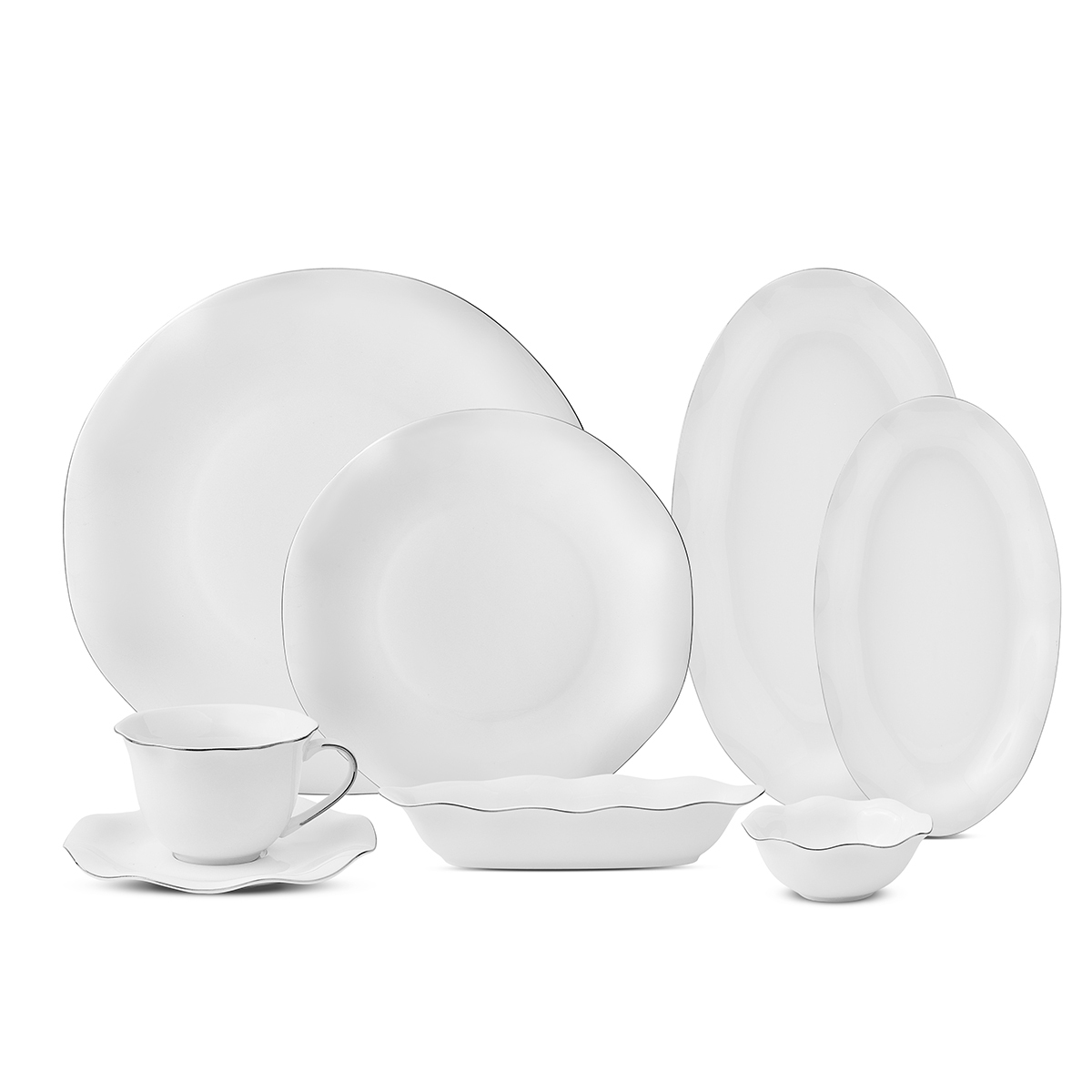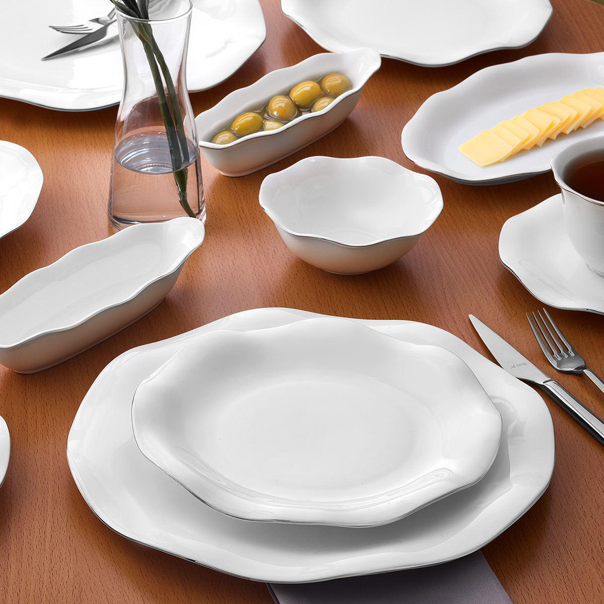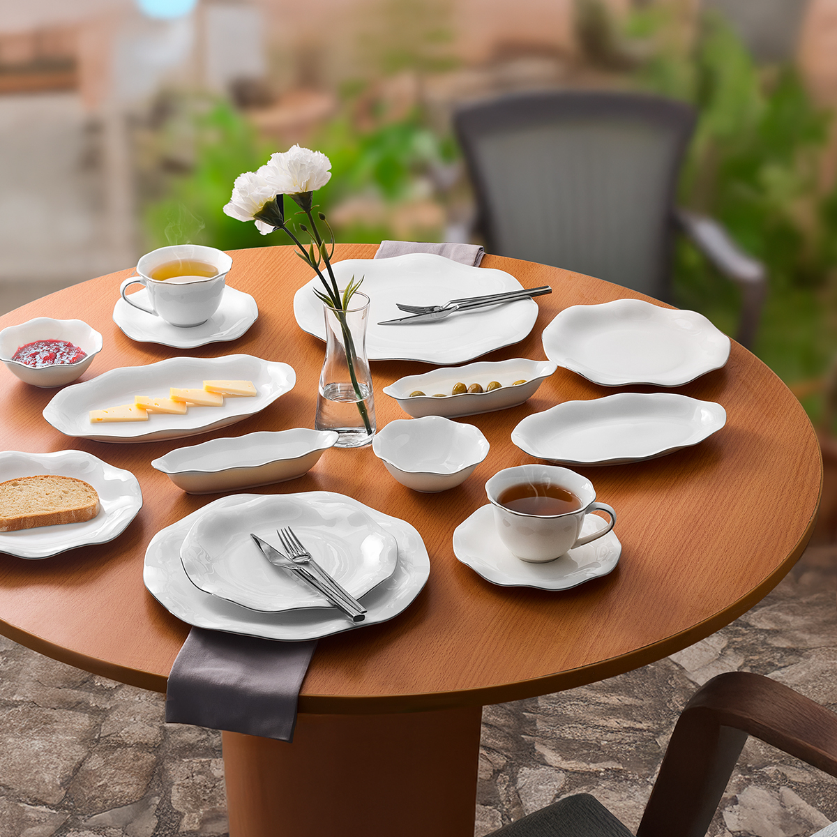 Aryıldız Daphne Platin 32 Parça Kahvaltı Takımı, klasik çizgileri modern zarafetle buluşturan özel bir koleksiyondur.