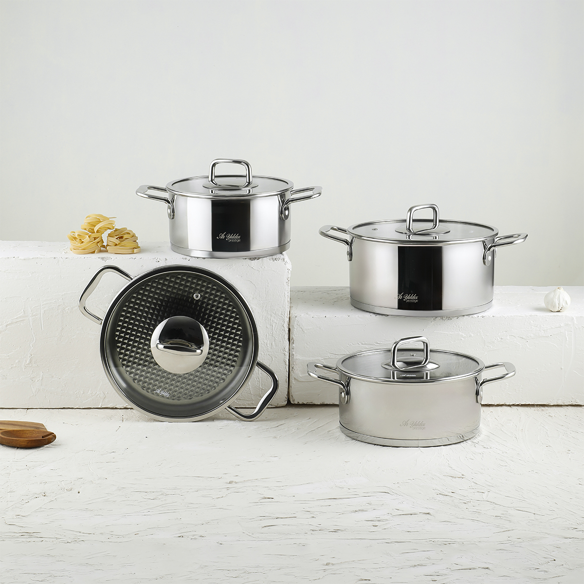 Yüksek kaliteli çelikten üretilen tencereler, hem şık tasarımı hem de dayanıklı yapısıyla mutfağınızın vazgeçilmezi olmaya adaydır.