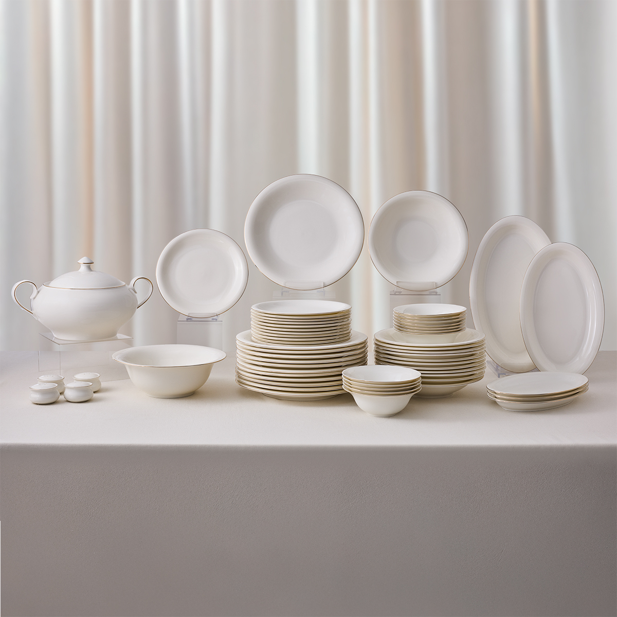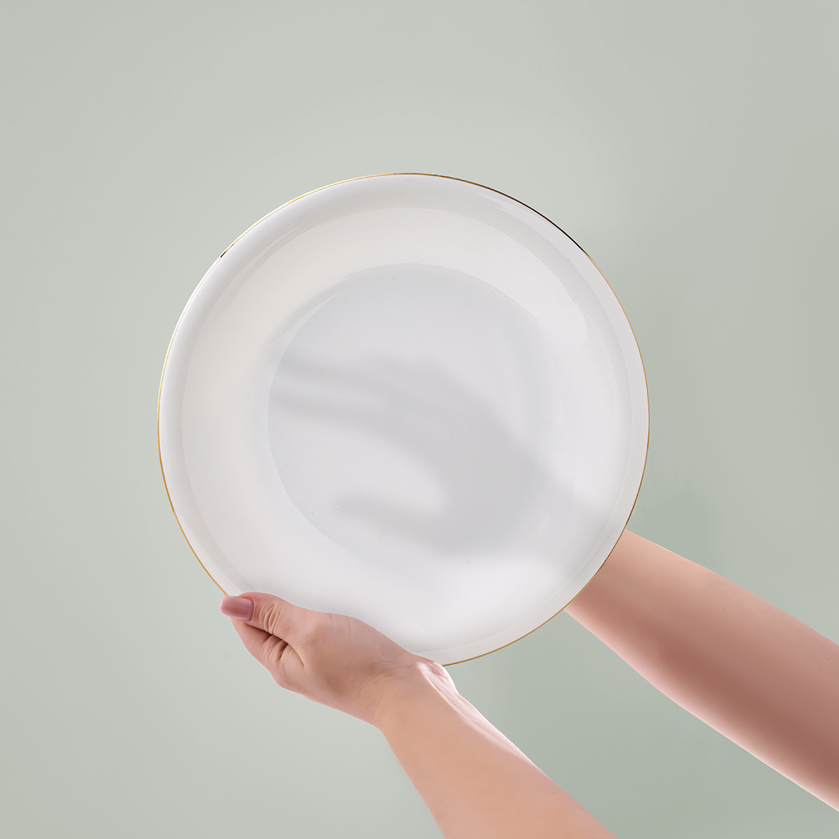 Yumuşak parlak porselen yüzeyine işlenen hatlar, ışığı her açıdan zarifçe yansıtır.