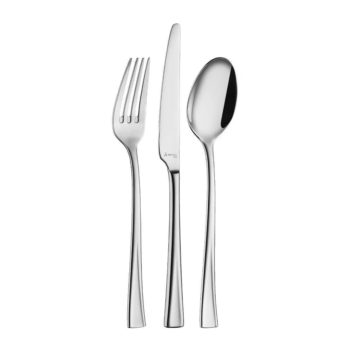 Aryıldız 12 Kişilik Çatal, Kaşık, Bıçak Takımı, modern tasarımı ve parlaklığı ile sofralara benzersiz bir şıklık getirir.