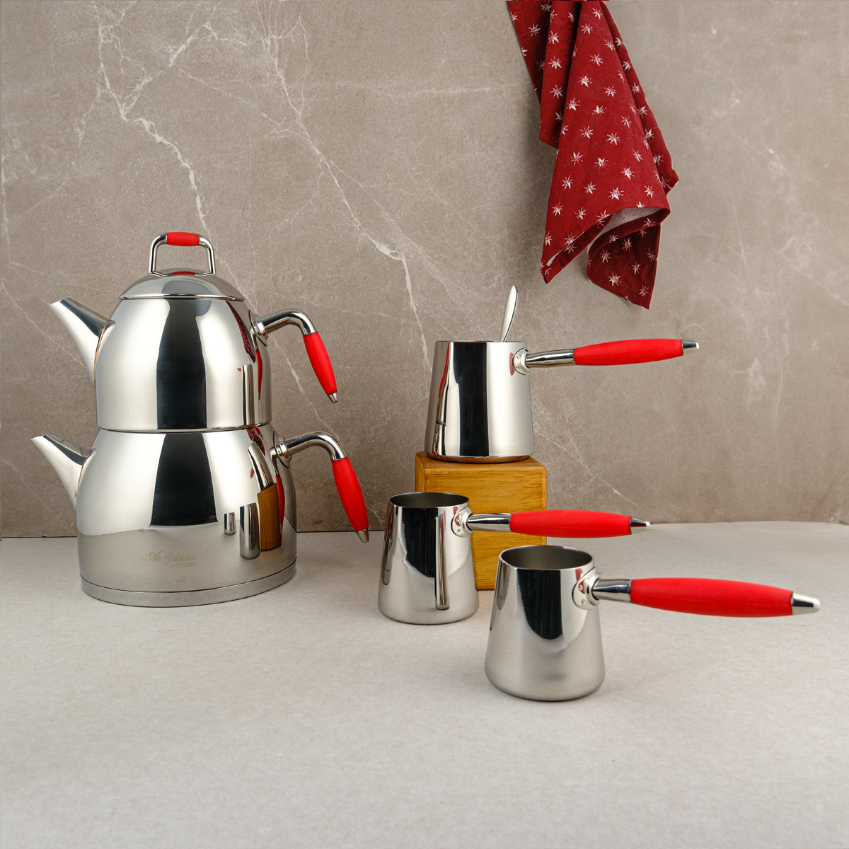 Ar Yıldız Çaydanlık ve cezve takımları paslanmaz çelik gövdeden üretilen özel tasarımlara sahiptir.