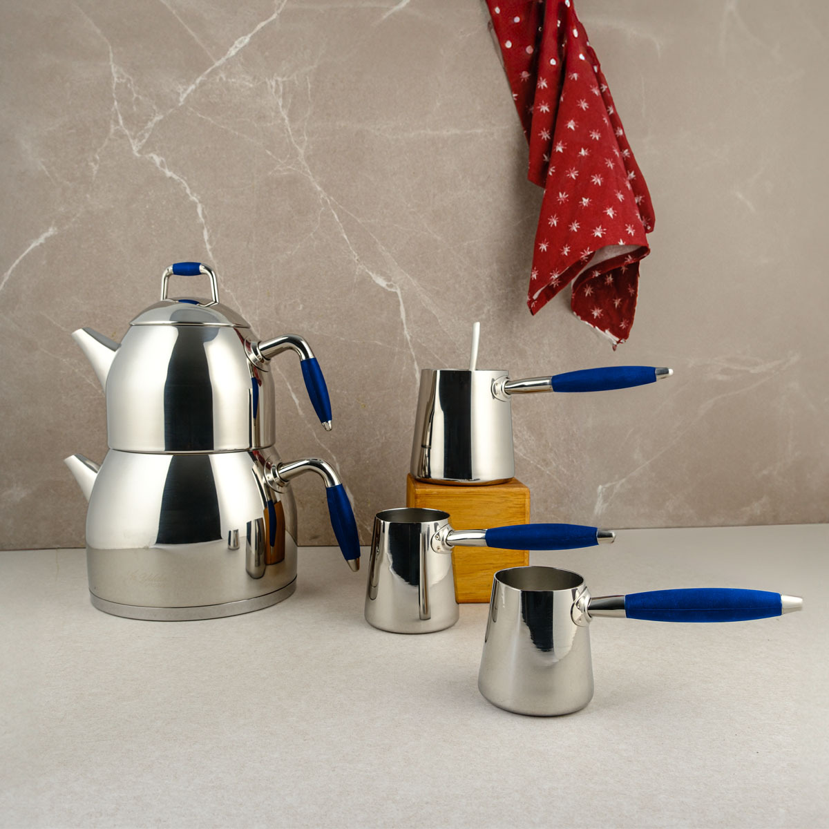 Ar Yıldız Çaydanlık ve cezve takımları paslanmaz çelik gövdeden üretilen özel tasarımlara sahiptir.