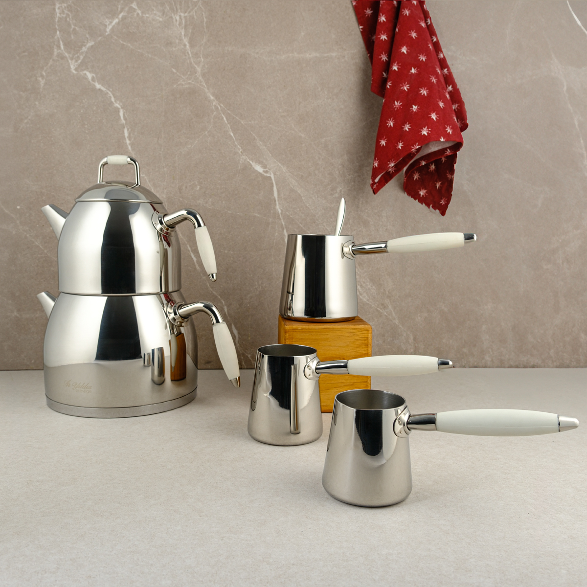 Ar Yıldız Çaydanlık ve cezve takımları paslanmaz çelik gövdeden üretilen özel tasarımlara sahiptir.
