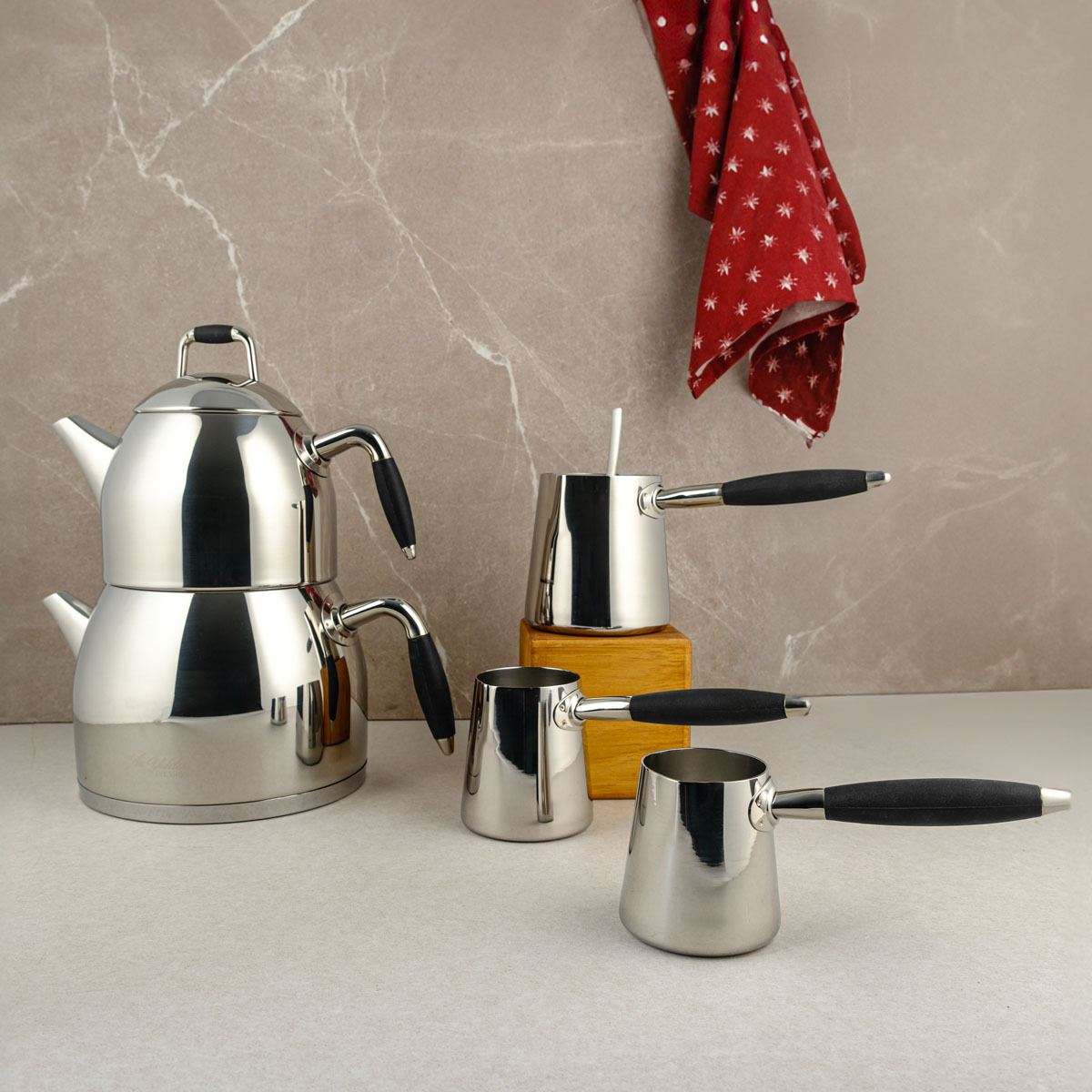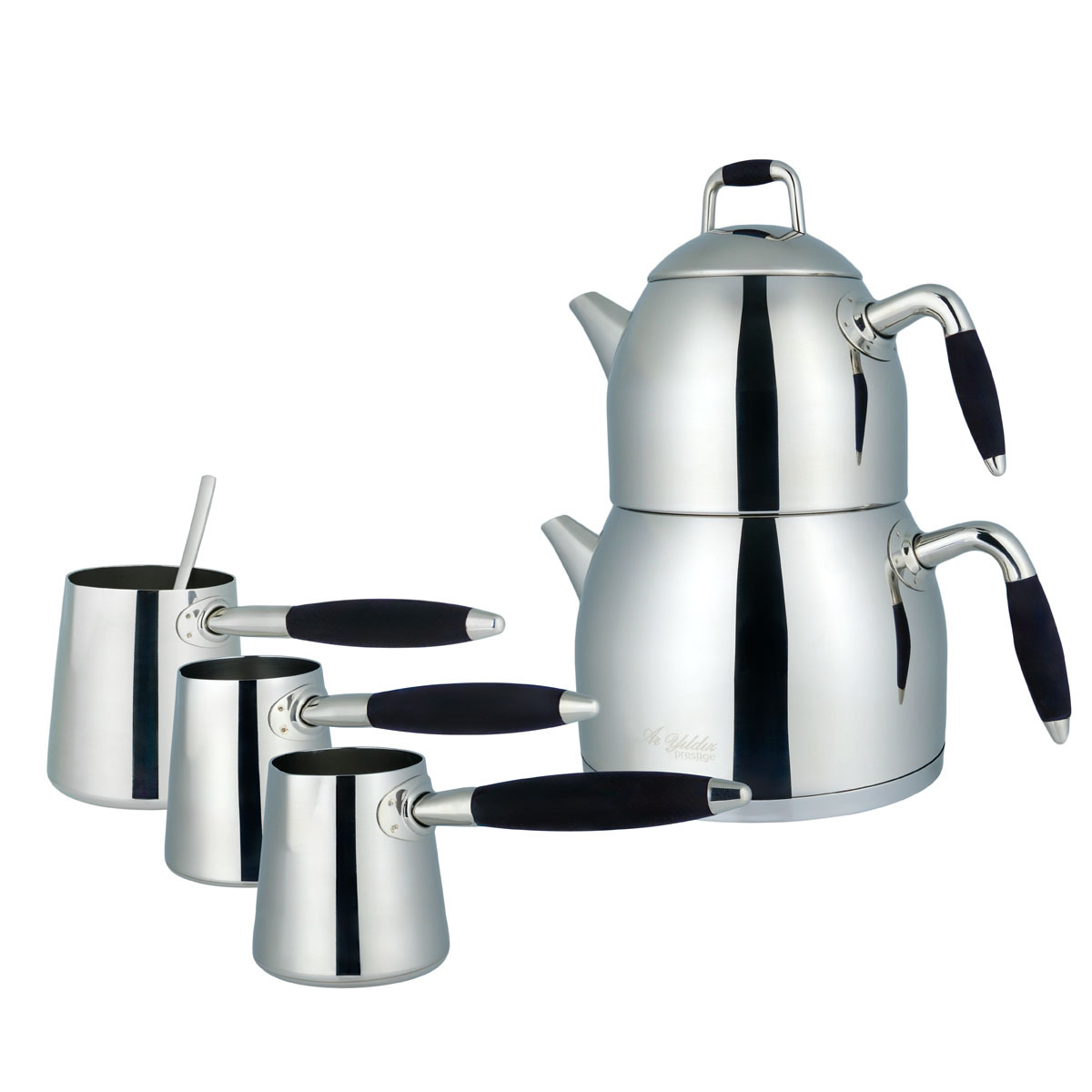 Ar Yıldız Çaydanlık ve cezve takımları paslanmaz çelik gövdeden üretilen özel tasarımlara sahiptir.