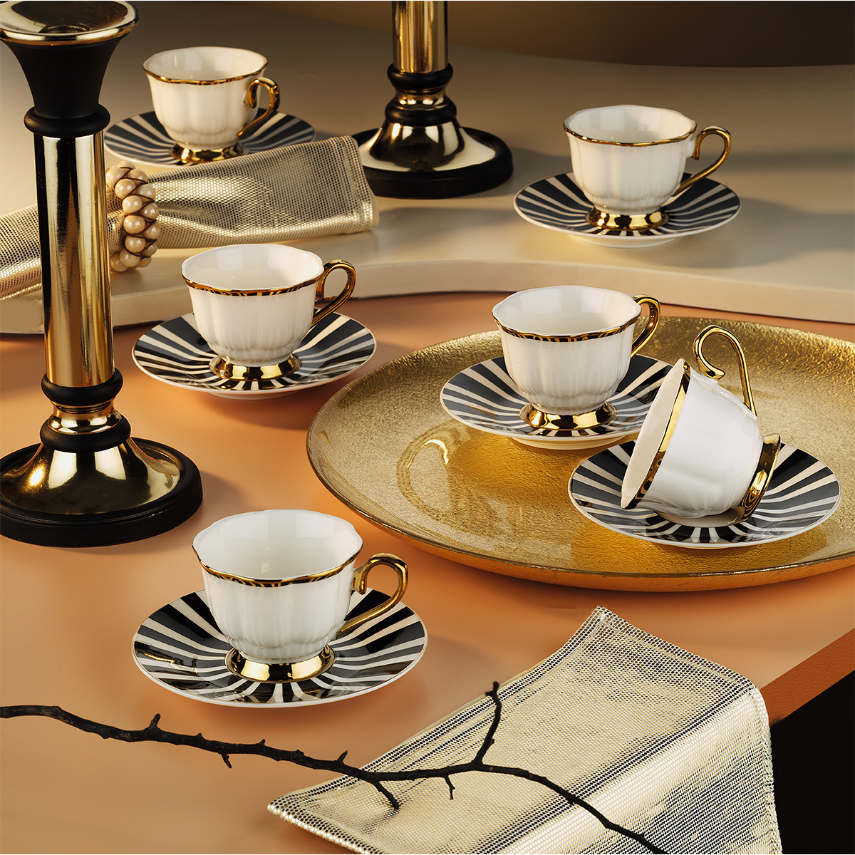 Fincan ve tabaklardan oluşan bu takım hem günlük hem de özel ikramlarınız için harika bir seçim olacak.