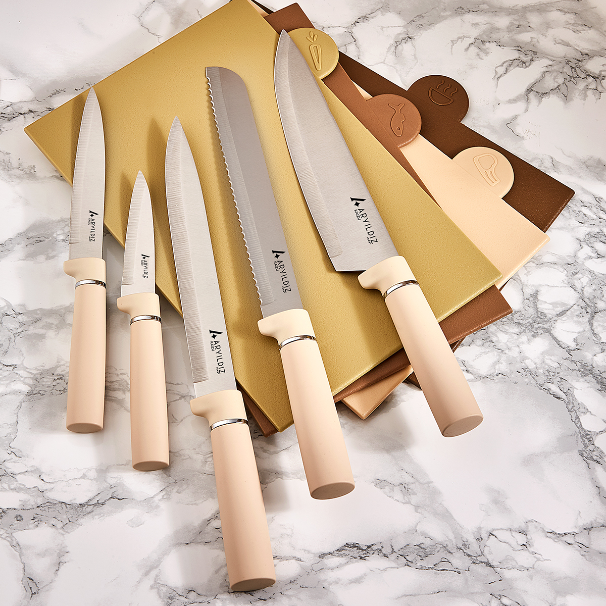 Bu set, hem profesyonel hem de ev tipi kullanıma uygundur. Şık tasarımıyla mutfağınıza estetik bir dokunuş katarken, pratikliğiyle yemek hazırlık sürecinizi kolaylaştırır.