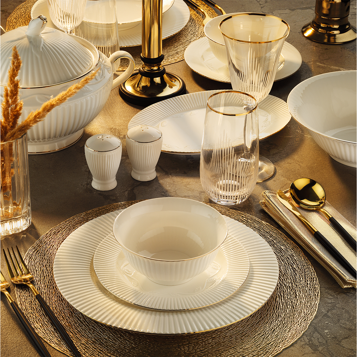 Aryıldız Karen Gold 12 Kişilik 60 Parça Yemek Takımı