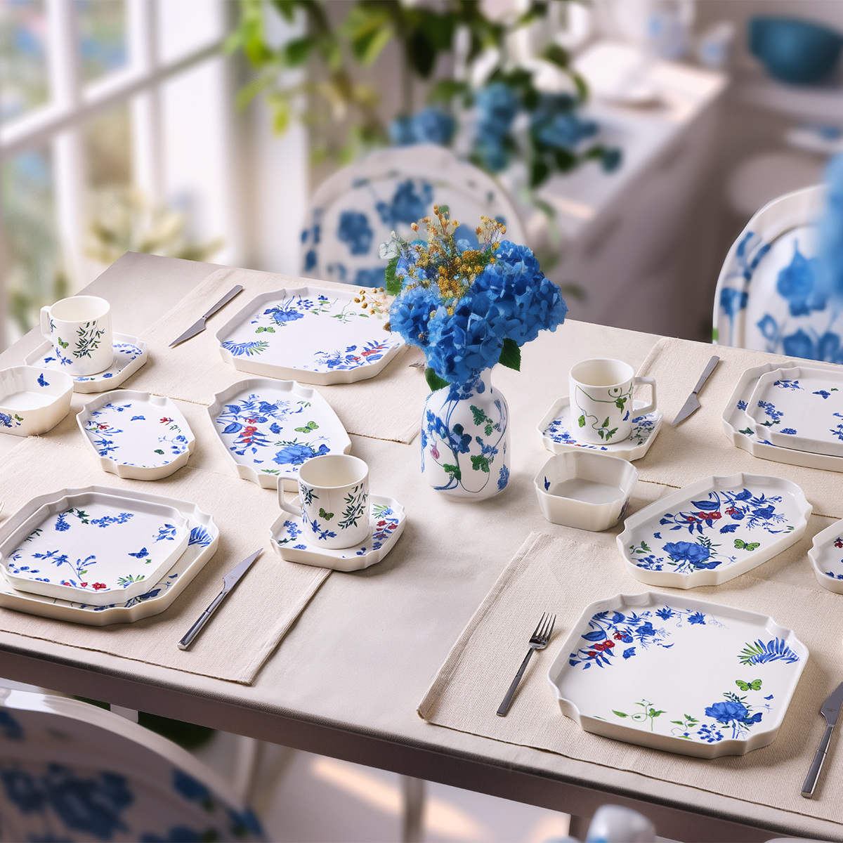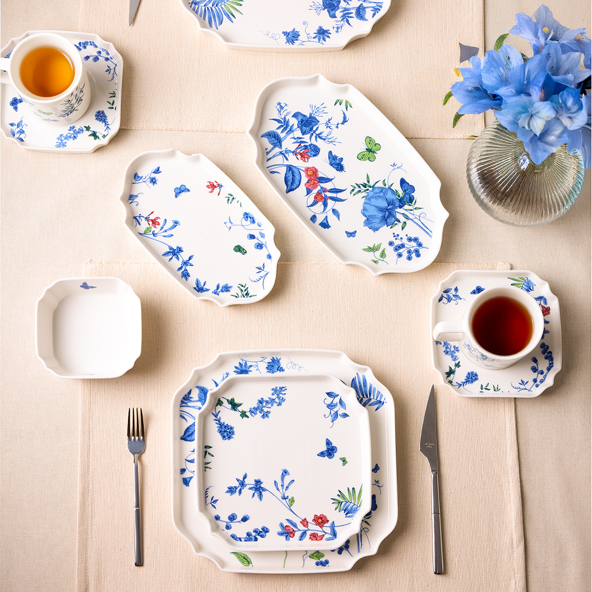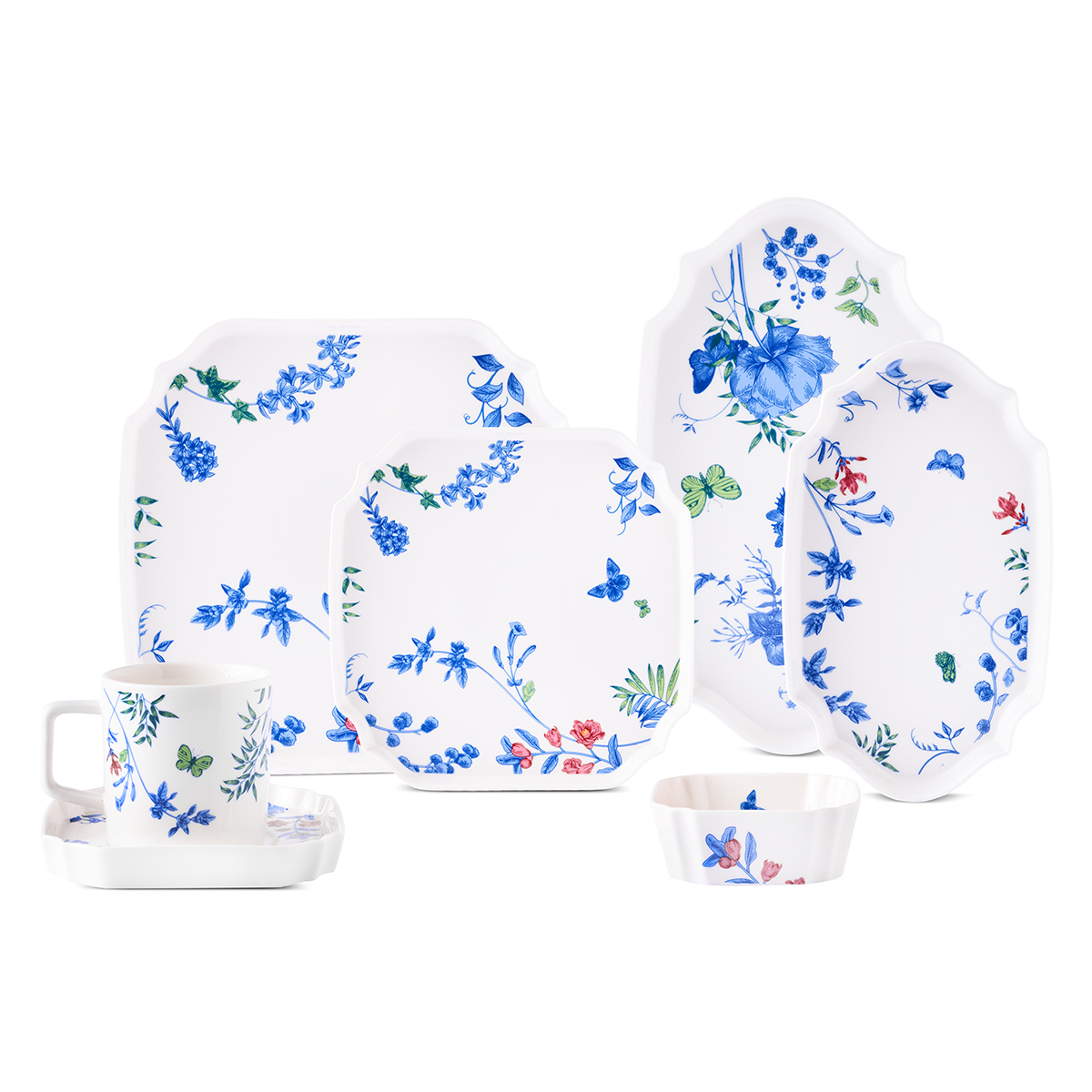 32 Parça Tam Set: 6 kişilik servis düzenine uygun; servis tabakları, çay tabakları, zeytinlik, reçellik ve sunum parçalarıyla eksiksiz bir kahvaltı keyfi sunar.