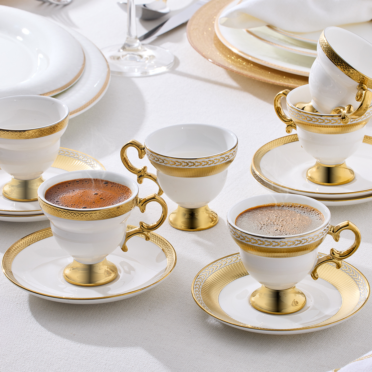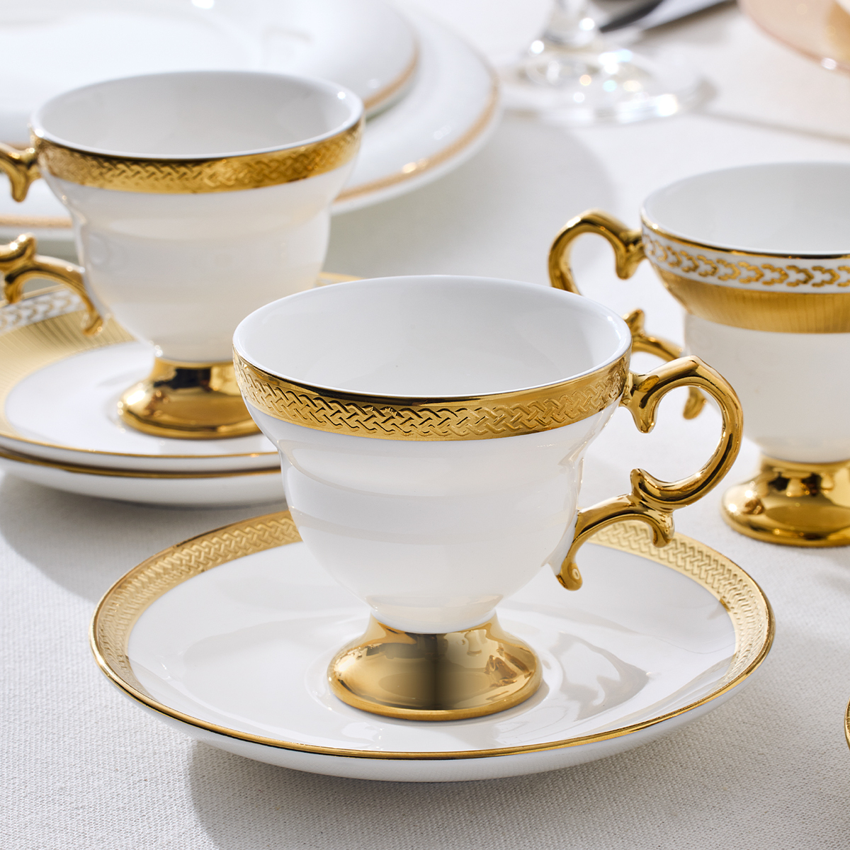 12 Parça Tam Set: 6 adet fincan ve 6 adet fincan tabağından oluşur.