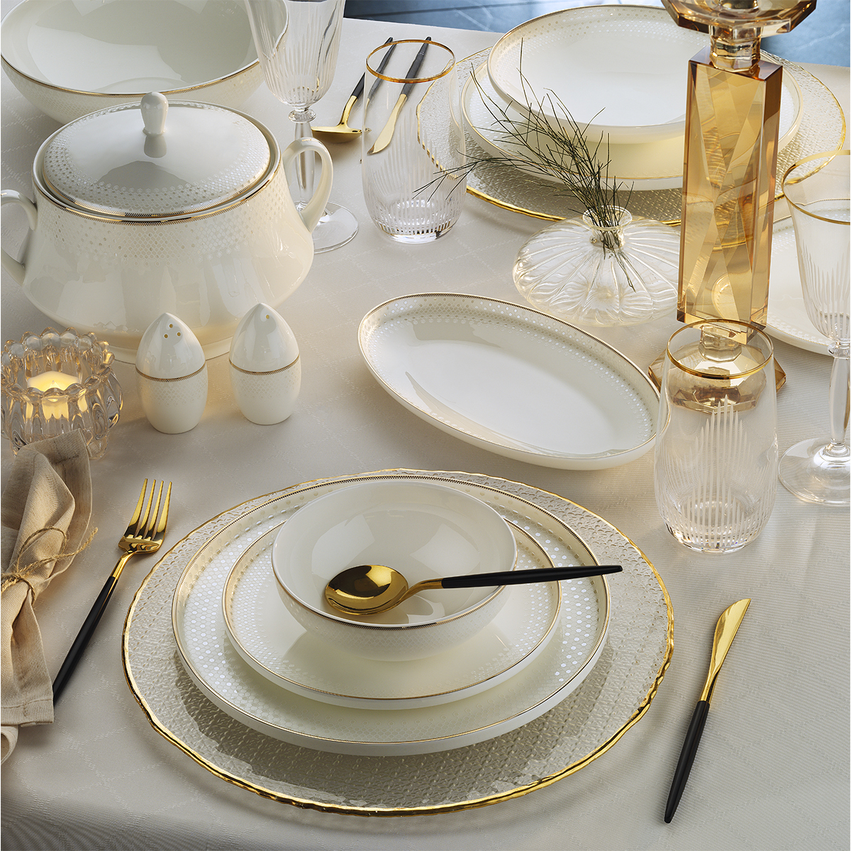 Aryıldız Maria Round Gold 12 Kişilik 60 Parça Yemek Takımı