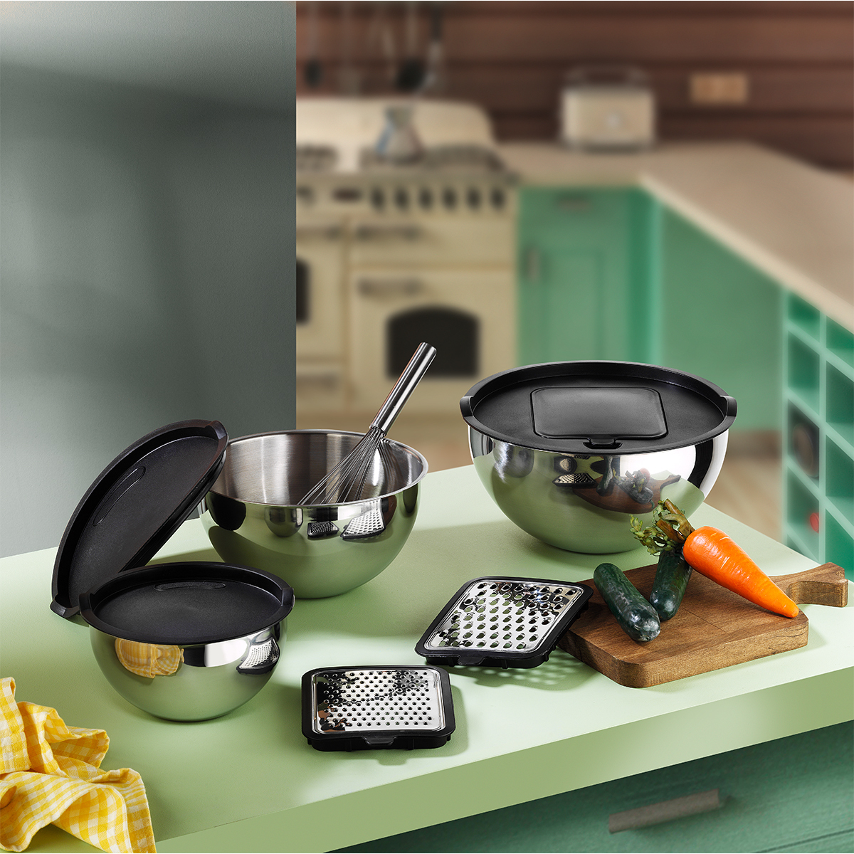 İki farklı rende ucuna sahip olan bu saklama kabı istediğiniz şekillerde rende yapabilmeyi ve yiyeceklerinizi kap içerisinde karıştırabilmenize imkan sağlıyor.