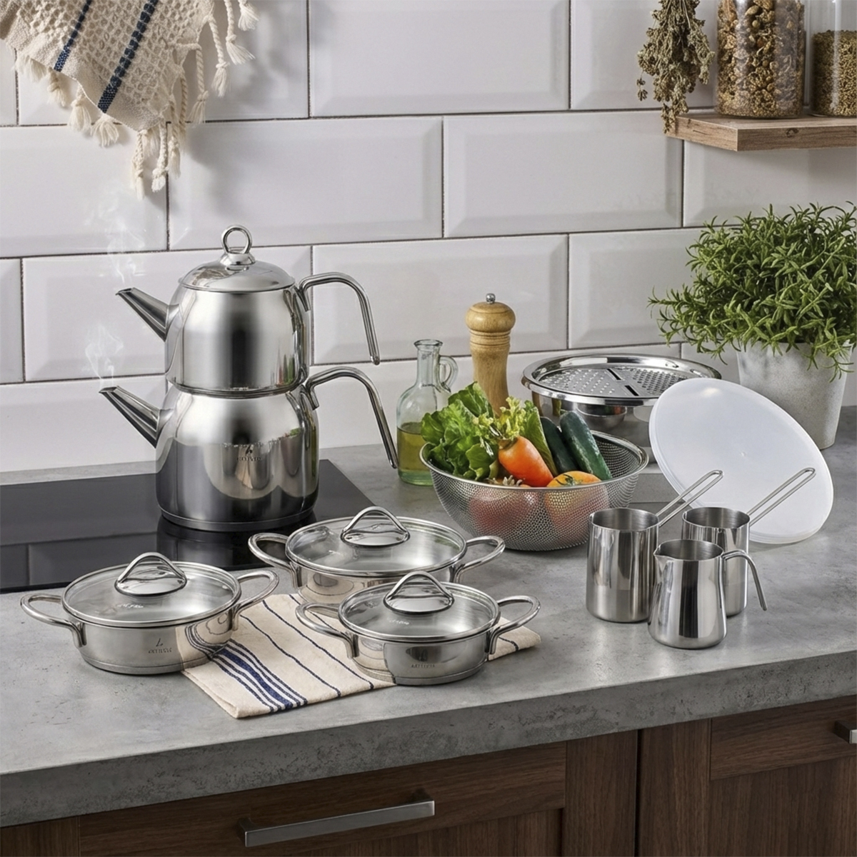 Aryıldız Çaydanlık takımları paslanmaz çelik gövdeden üretilen özel tasarımlara sahiptir.