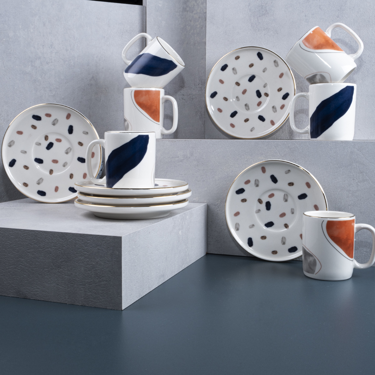 Birlikte mükemmel bir uyum yakalayan geometrik desenlerin hareketi ile kahve sunumlarınızda misafirlerinizin beğenisini kazanacak bu 6 kişilik takım, en sevdiğiniz fincanlarınız arasında yerini almaya aday!