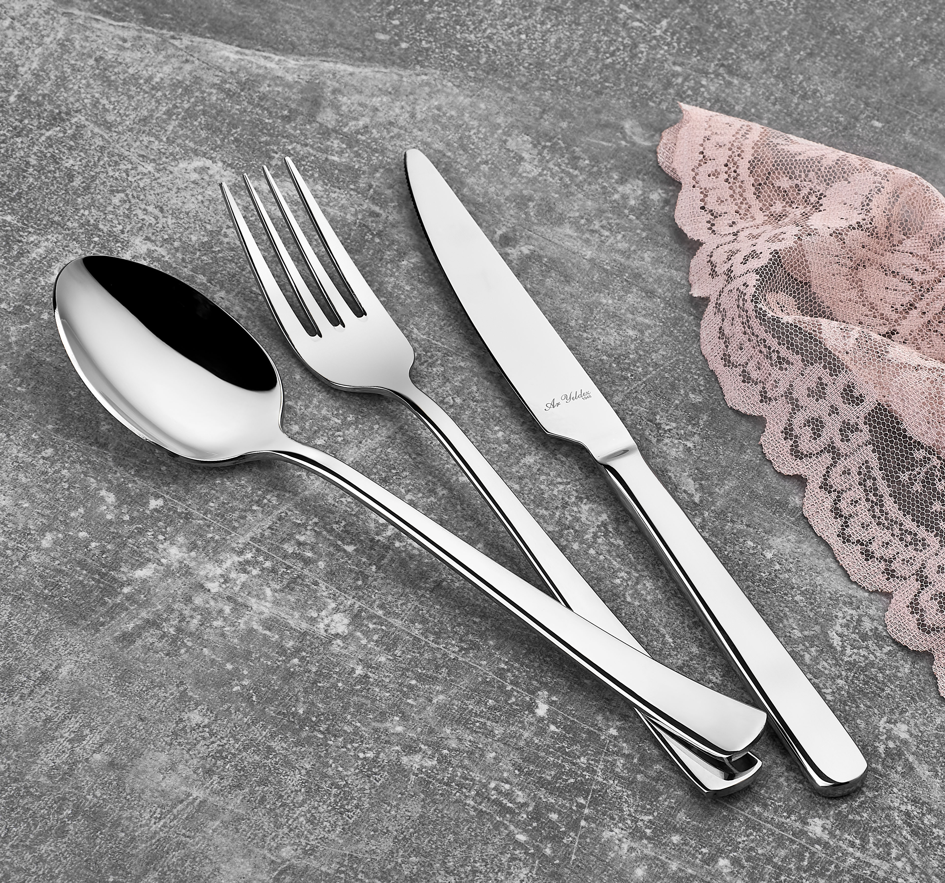 Aryıldız Nisan 36 Parça Çatal Kaşık Bıçak Seti, yansıtıcı gövdesi, zamansız tasarım çekiciliği ve her dekorla uyum sağlayan parlak bir yüzey sunan zarif, stilize bir çizgiyle vurgulanmıştır.