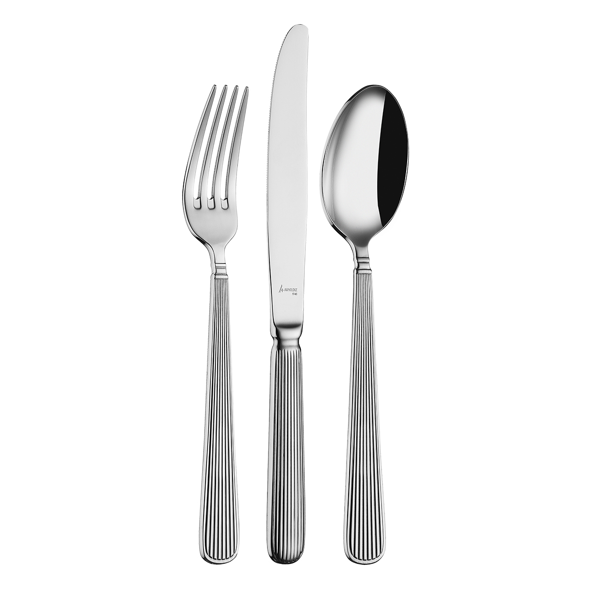 Aryıldız 12 Kişilik Çatal, Kaşık, Bıçak Takımı, modern tasarımı ve parlaklığı ile sofralara benzersiz bir şıklık getirir.