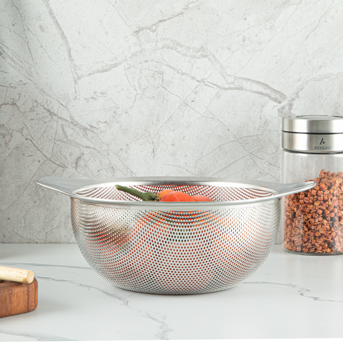 22 cm çapındaki süzgeç, mutfağınızda hem hazırlık hem de servis aşamasında vazgeçilmez bir yardımcıdır.