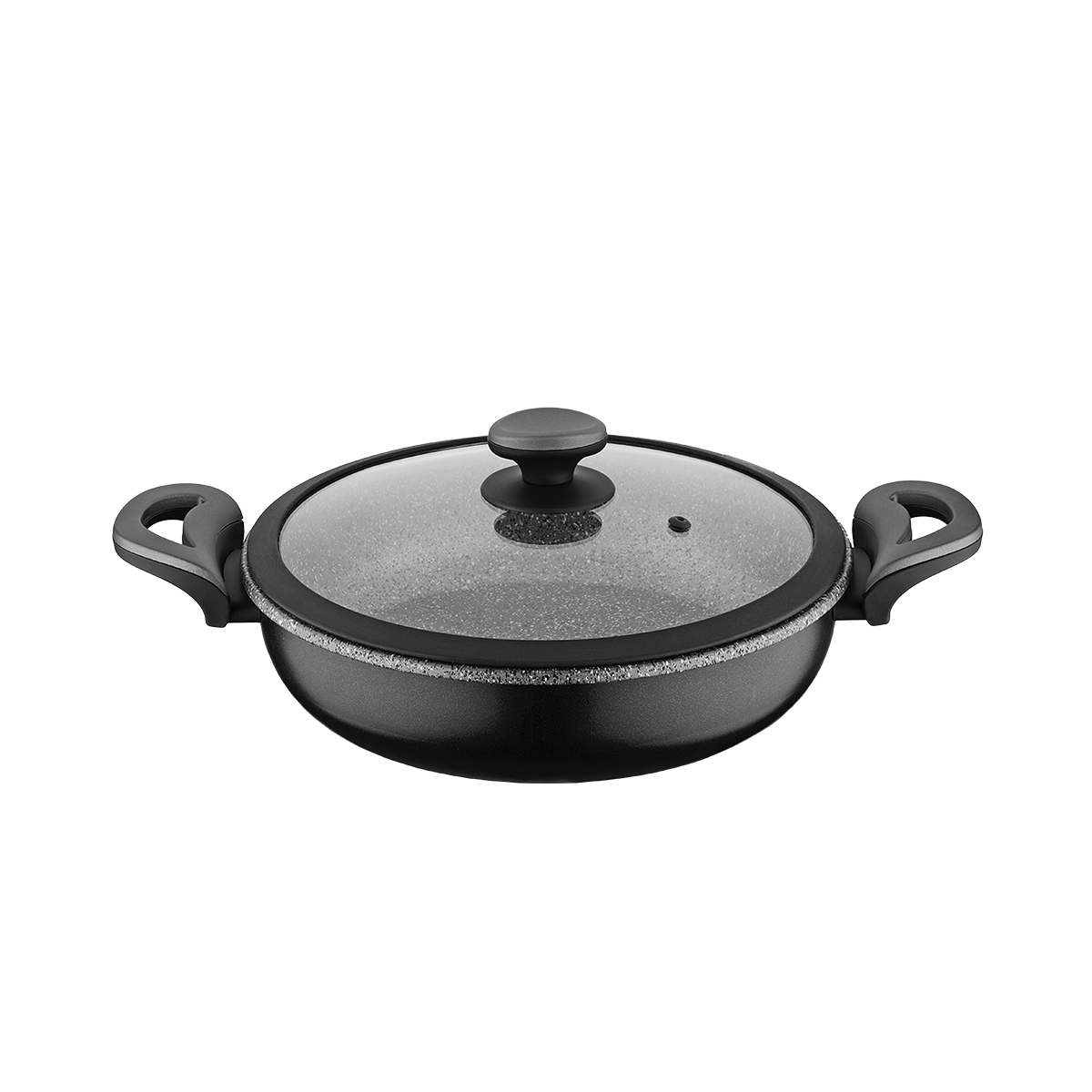 Granit kaplamalı tencereleri ile sağlıklı ve yapışmaz pişirme deneyimi sunarken, ısıya dayanıklı silikon servis setiyle yemek hazırlığınızı kolaylaştırır.