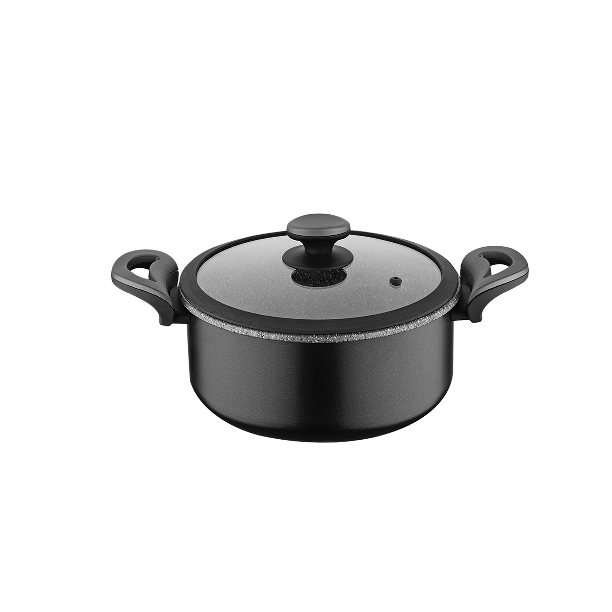 Granit kaplamalı tencereleri ile sağlıklı ve yapışmaz pişirme deneyimi sunarken, ısıya dayanıklı silikon servis setiyle yemek hazırlığınızı kolaylaştırır.