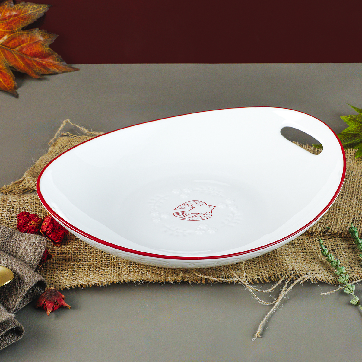 Şık Aperatif veya Meze Sunumu: Sunum tabağı, birden fazla aperatif veya mezeyi aynı anda sergileyebileceğiniz geniş bir alan sunar. Bu sayede farklı tatları bir arada sunmak daha kolay olur.