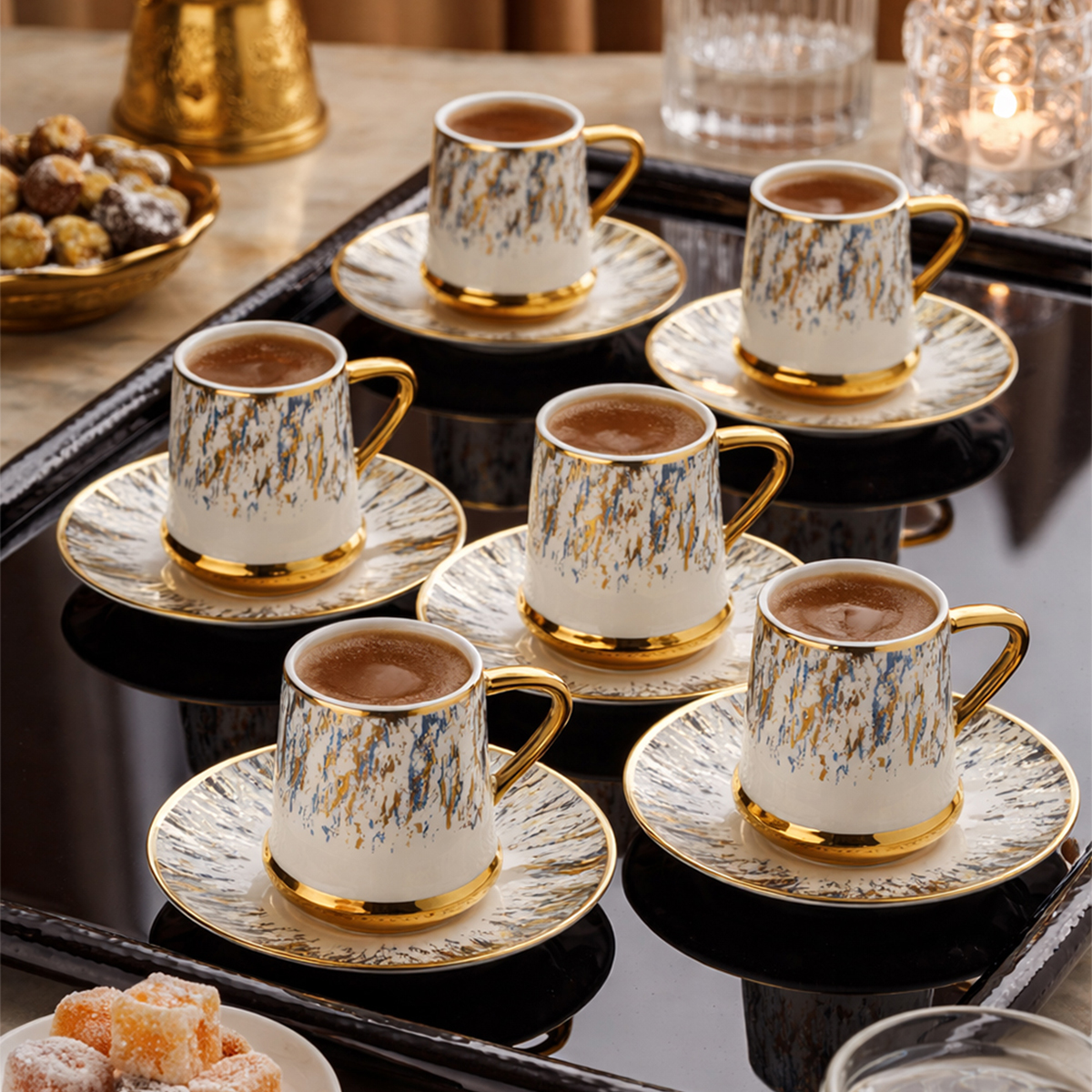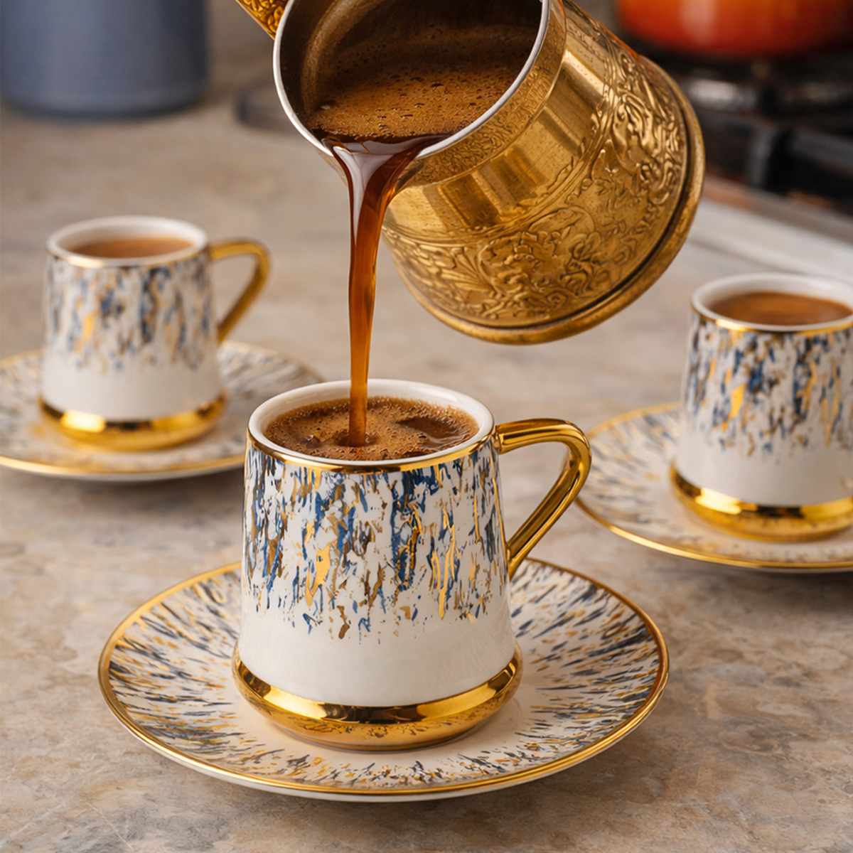 Türk kahvesinin eşsiz tadını özel tasarlanmış fincanlarımızla deneyimleyin.