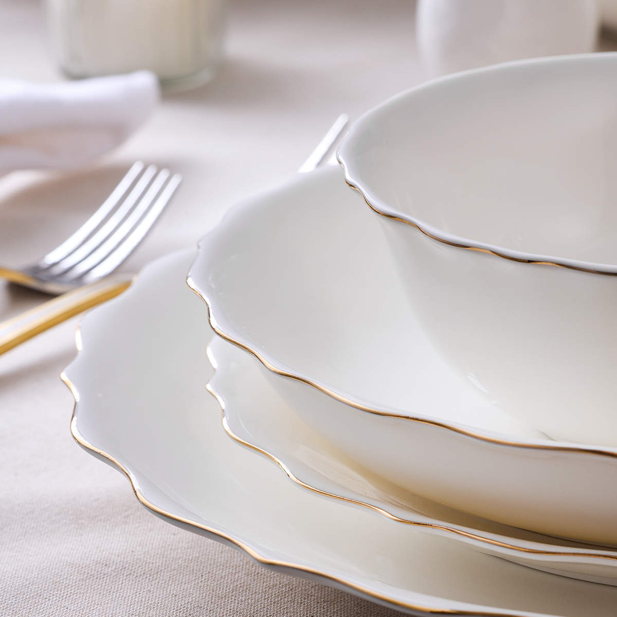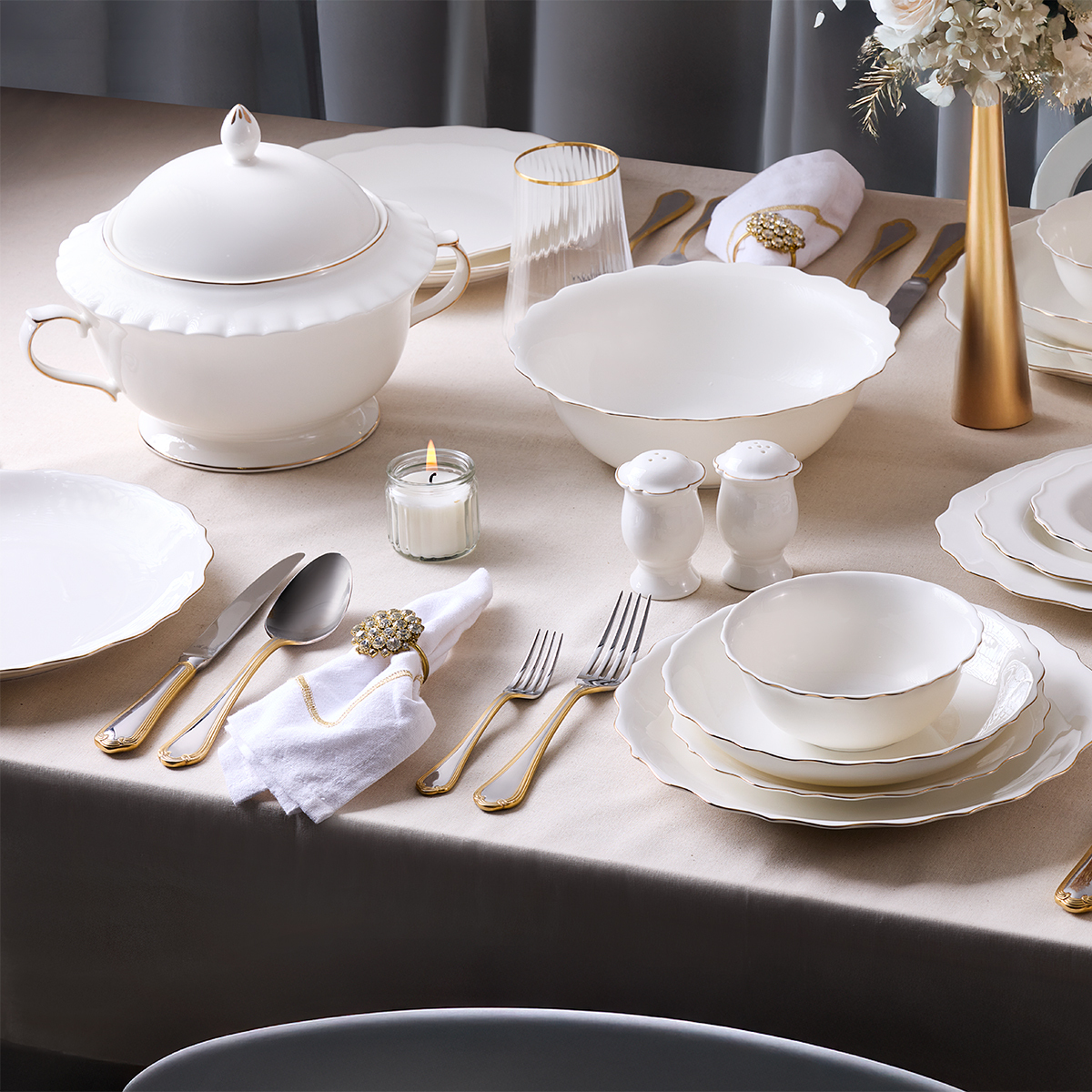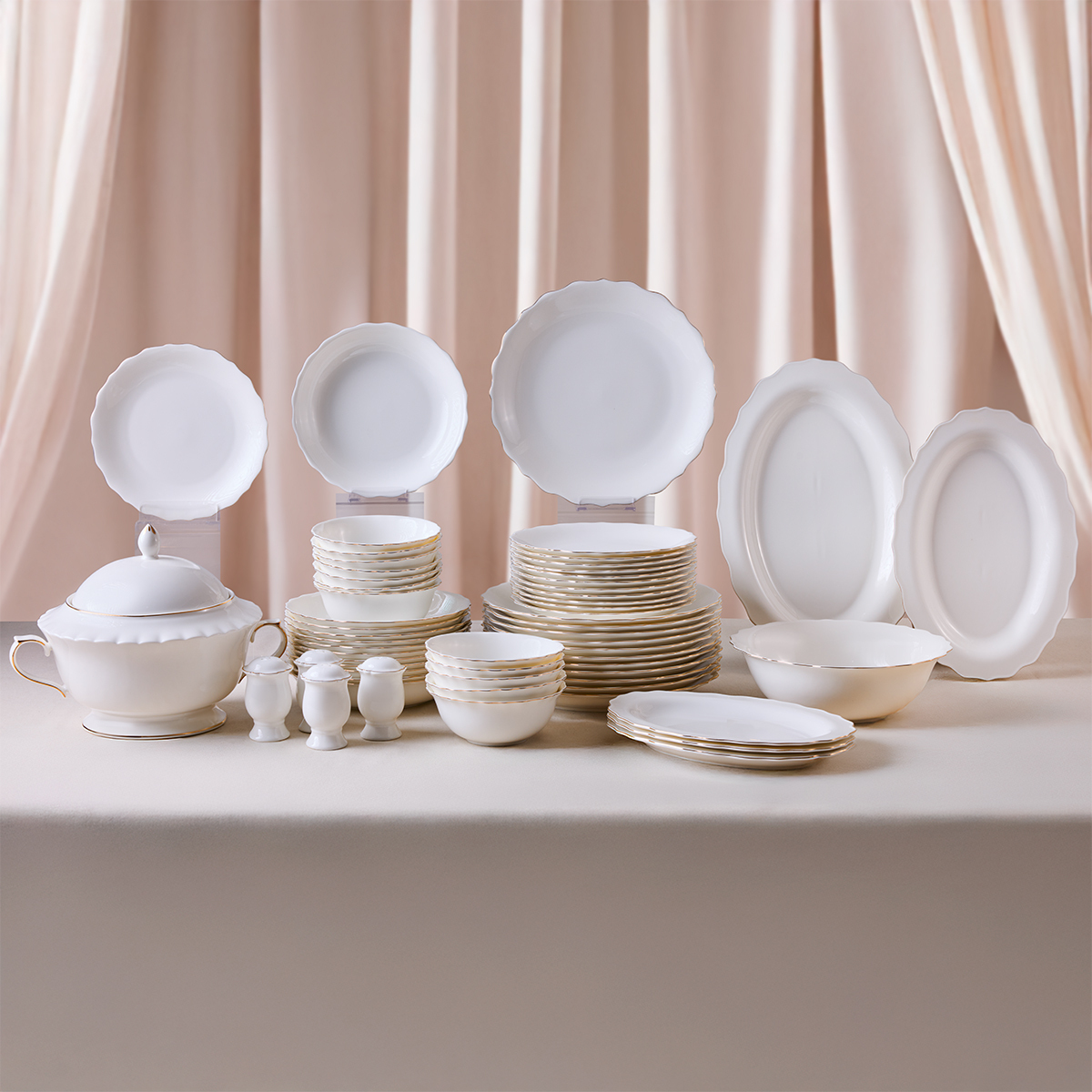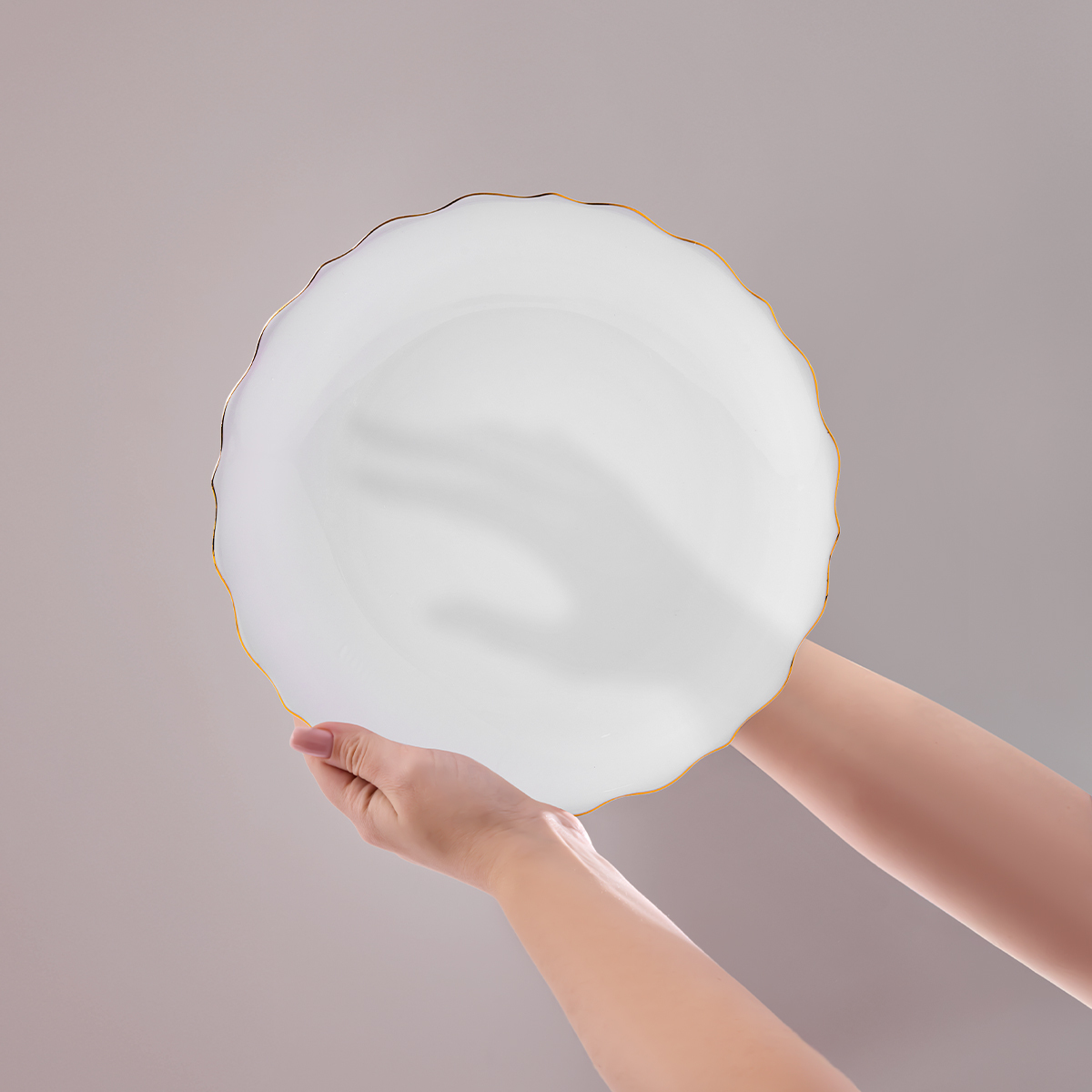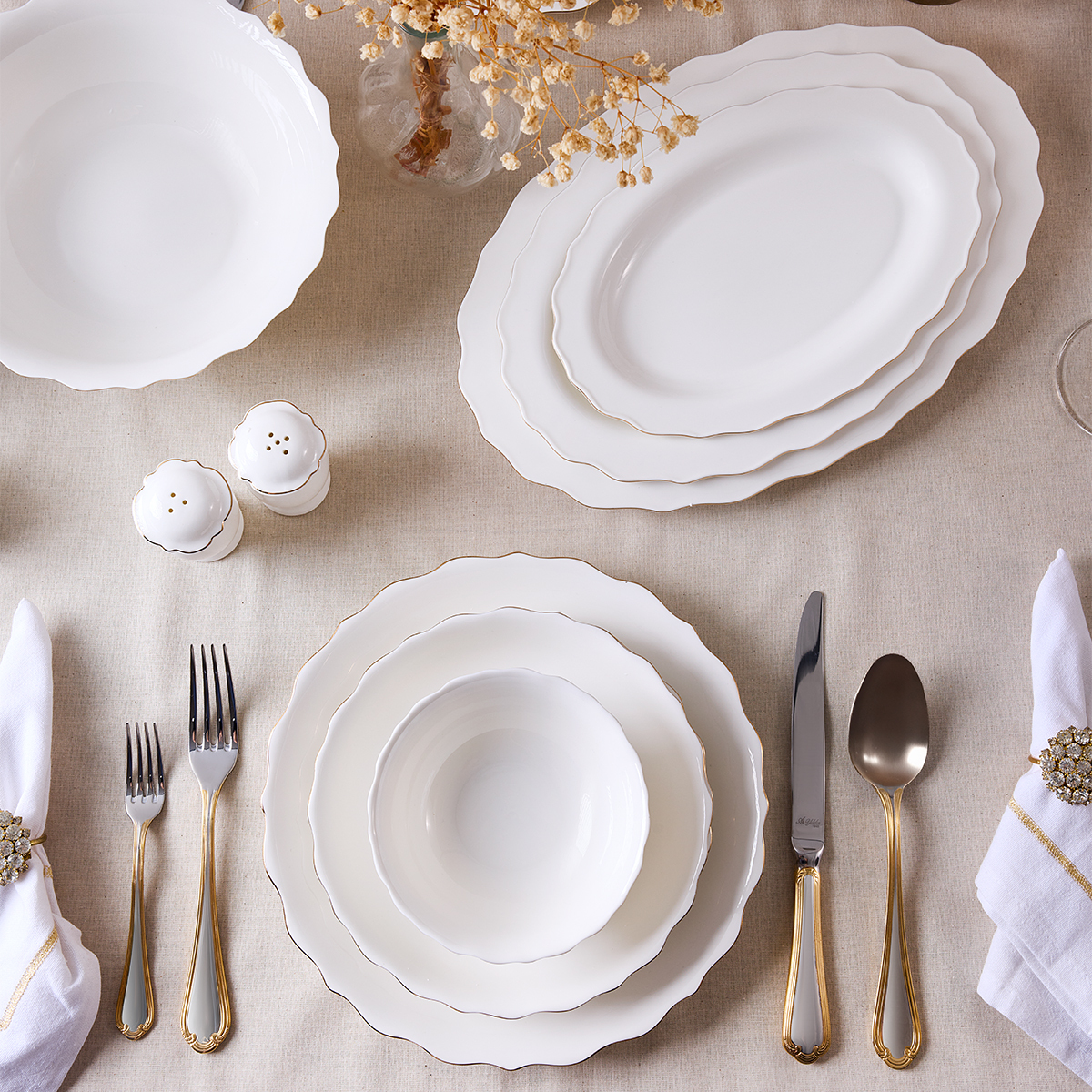 Görkemli bir davet sofrası ya da sevdiklerinizle paylaşacağınız sıcak bir akşam yemeği… Hangi an olursa olsun Seawave Gold, sadeliğin içindeki ihtişamı sofranıza taşır. Beyaz porselenin üzerine işlenen zarif gold çizgiler, ışığı yumuşak biçimde yansıtarak masada modern bir ışıltı yaratır.